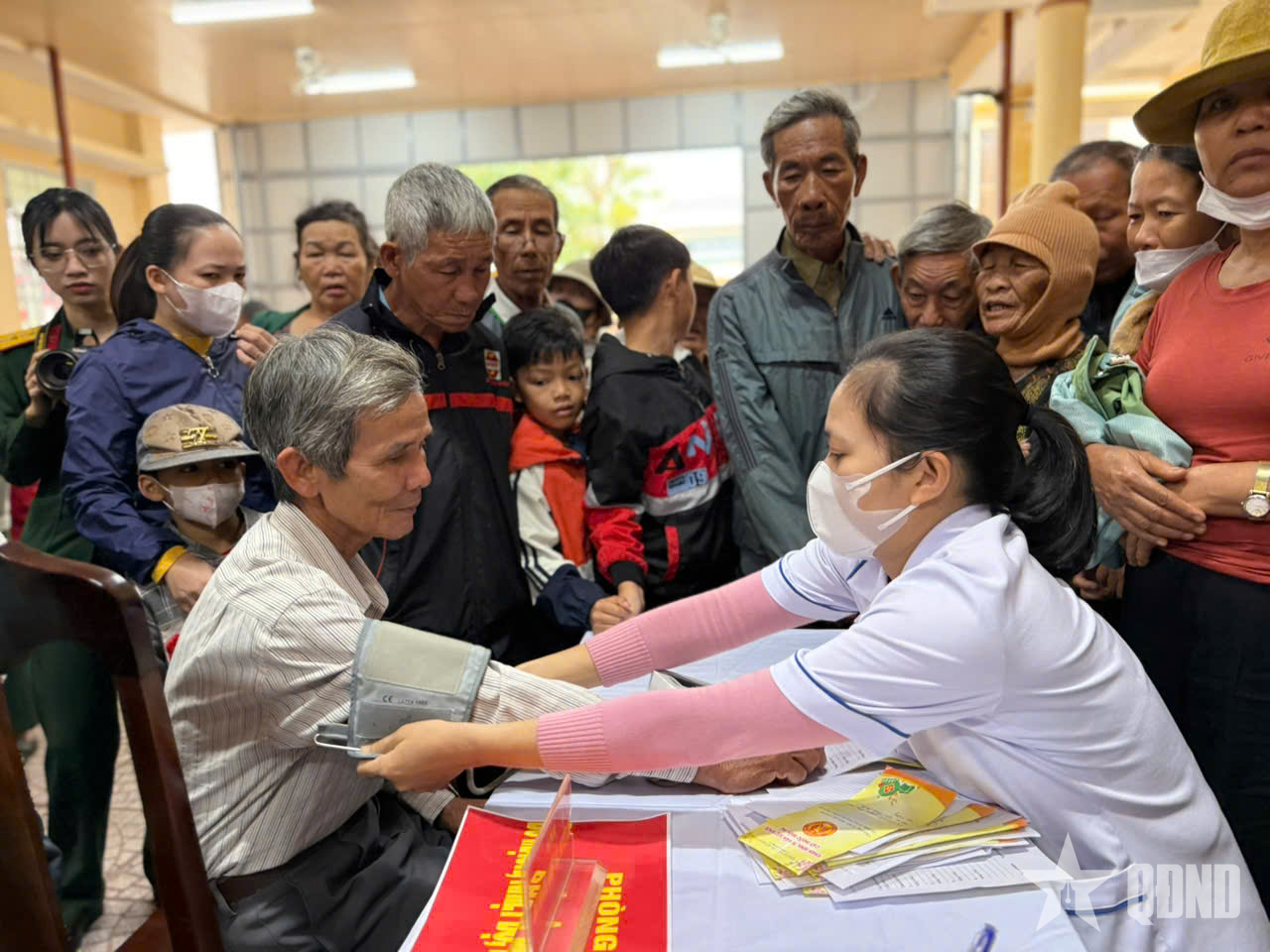 Phối hợp với lực lượng quân y của Bộ Quốc phòng, các đơn vị đã tổ chức khám bệnh, cấp thuốc miễn phí cho hơn 8.523 lượt người dân; tiến hành phun khử khuẩn 253 điểm với diện tích hơn 2.813.800 m², vệ sinh 921 nguồn nước tại các khu vực bị ngập lụt. Đồng thời, tổ chức phun khử khuẩn, vệ sinh môi trường tại các vị trí thi công xây dựng; kết quả khử khuẩn 123 hộ gia đình, 34 điểm ăn ở của bộ đội với tổng diện tích hơn 31.740 m². Công tác vệ sinh an toàn thực phẩm được duy trì nghiêm túc; quân y các đơn vị thực hiện đầy đủ chế độ kiểm thực 3 bước, lưu nghiệm mẫu thực phẩm, tăng cường kiểm tra, giám sát chặt chẽ các bếp ăn, không để xảy ra ngộ độc thực phẩm.