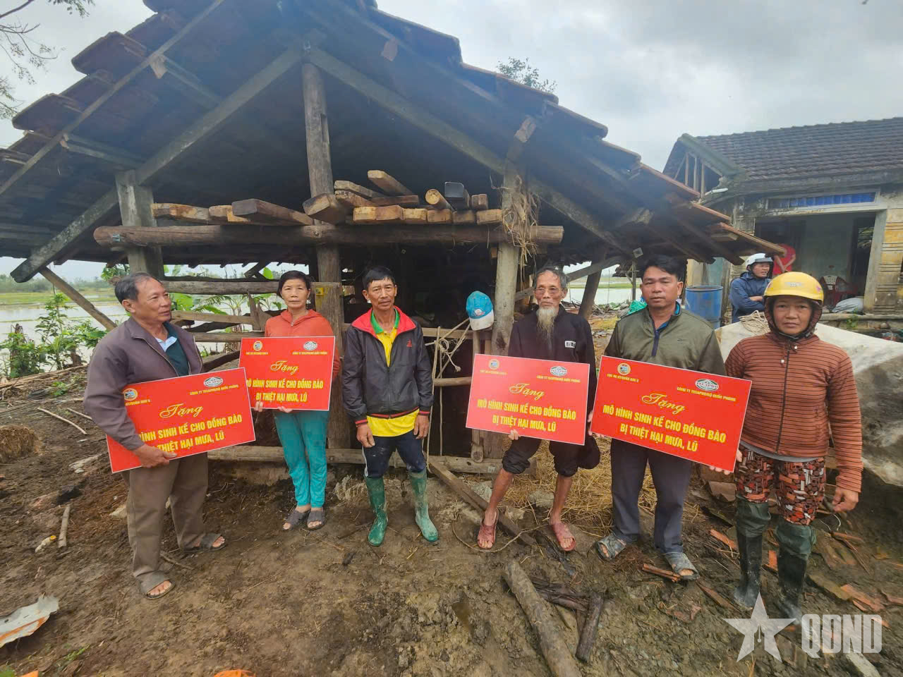 Những phần quà chan chứa nghĩa tình của bộ đội Khu 5 dành tặng nhân dân vùng lũ.