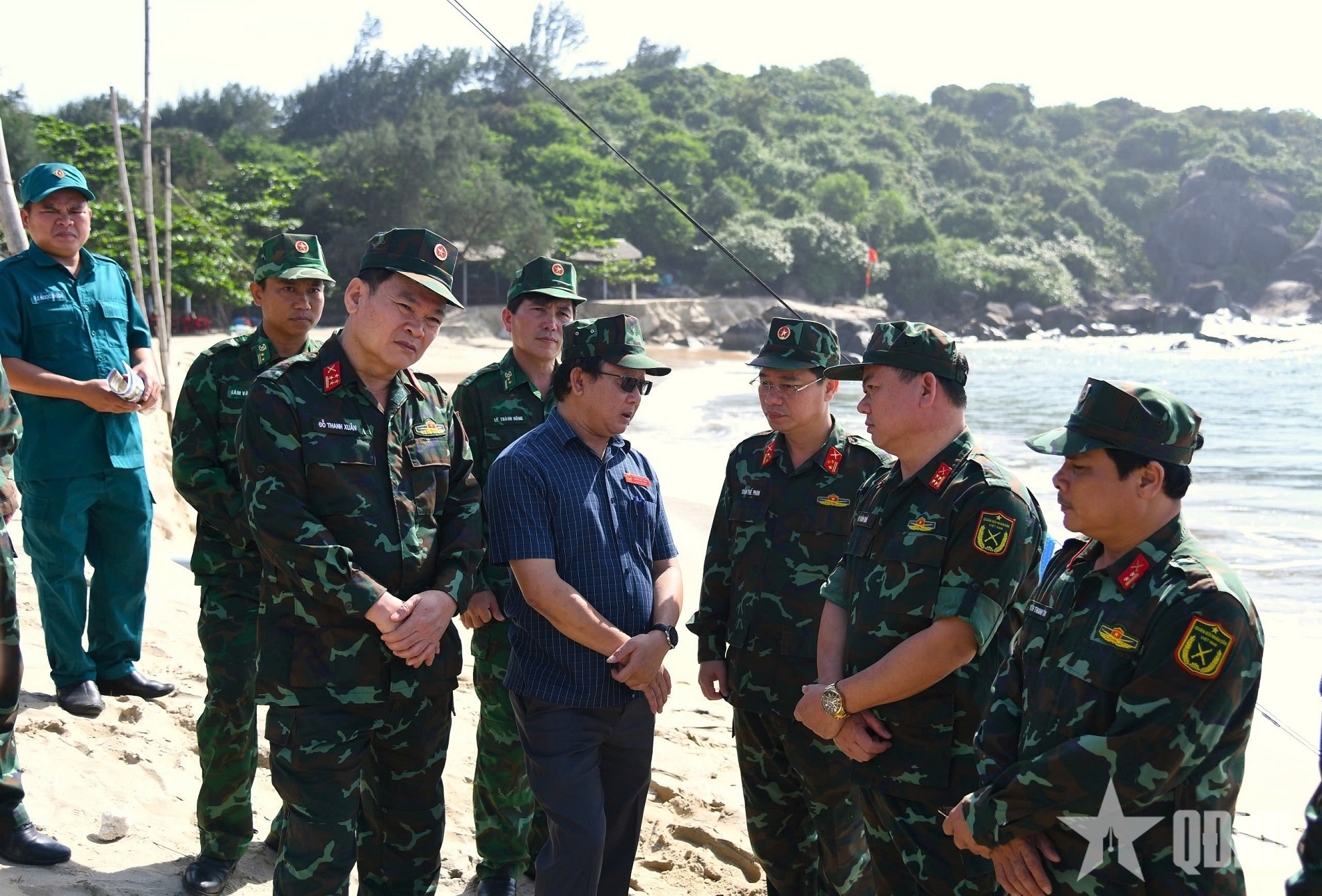 Đoàn công tác Quân khu 5 kiểm tra thực tế khu vực ven biển thôn Châu Me (phường Sa Huỳnh).