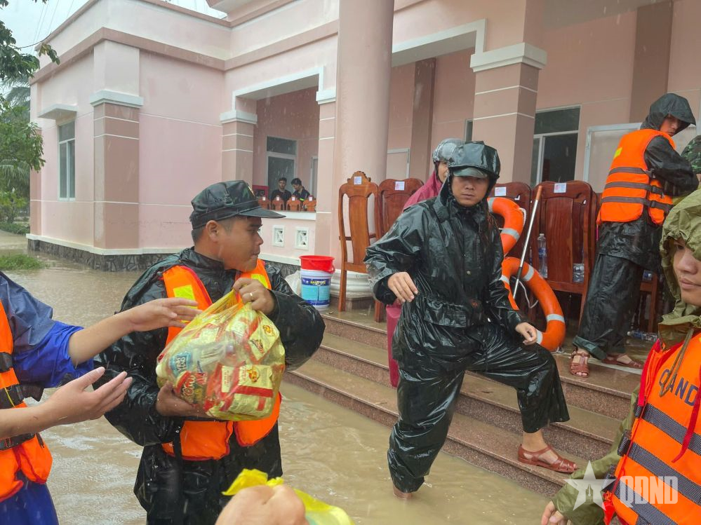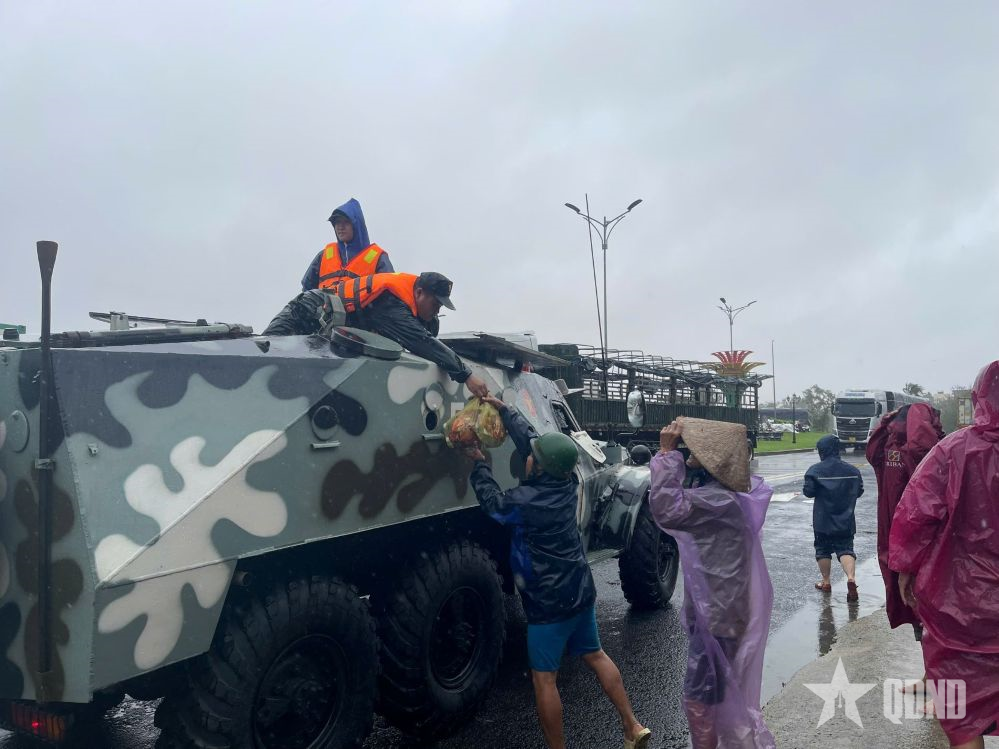 Trước tình hình khẩn cấp, Quân khu 5 đã điều động lực lượng và phương tiện đặc chủng, dùng xe thiết giáp vượt nước xiết, tiếp tế hàng nghìn suất nhu yếu phẩm đến với người dân vùng ngập sâu. Đoàn công tác do Đại tá Cao Văn Mười, Phó tham mưu trưởng Quân khu 5 trực tiếp chỉ huy, triển khai 3 xe thiết giáp vận chuyển hơn 3.000 suất quà, gồm: Mì tôm, lương khô, nước uống và các nhu yếu phẩm thiết yếu.