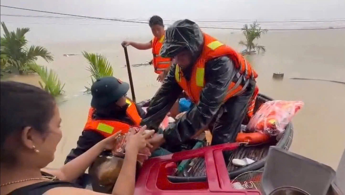 Trao quà hỗ trợ ứng cứu người dân vùng ngập lũ.