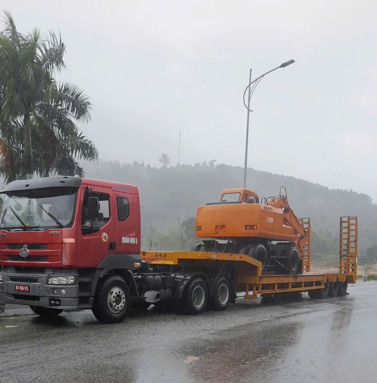 Nhiều loại máy xúc, máy ủi được vận chuyển nhanh lên Trà My