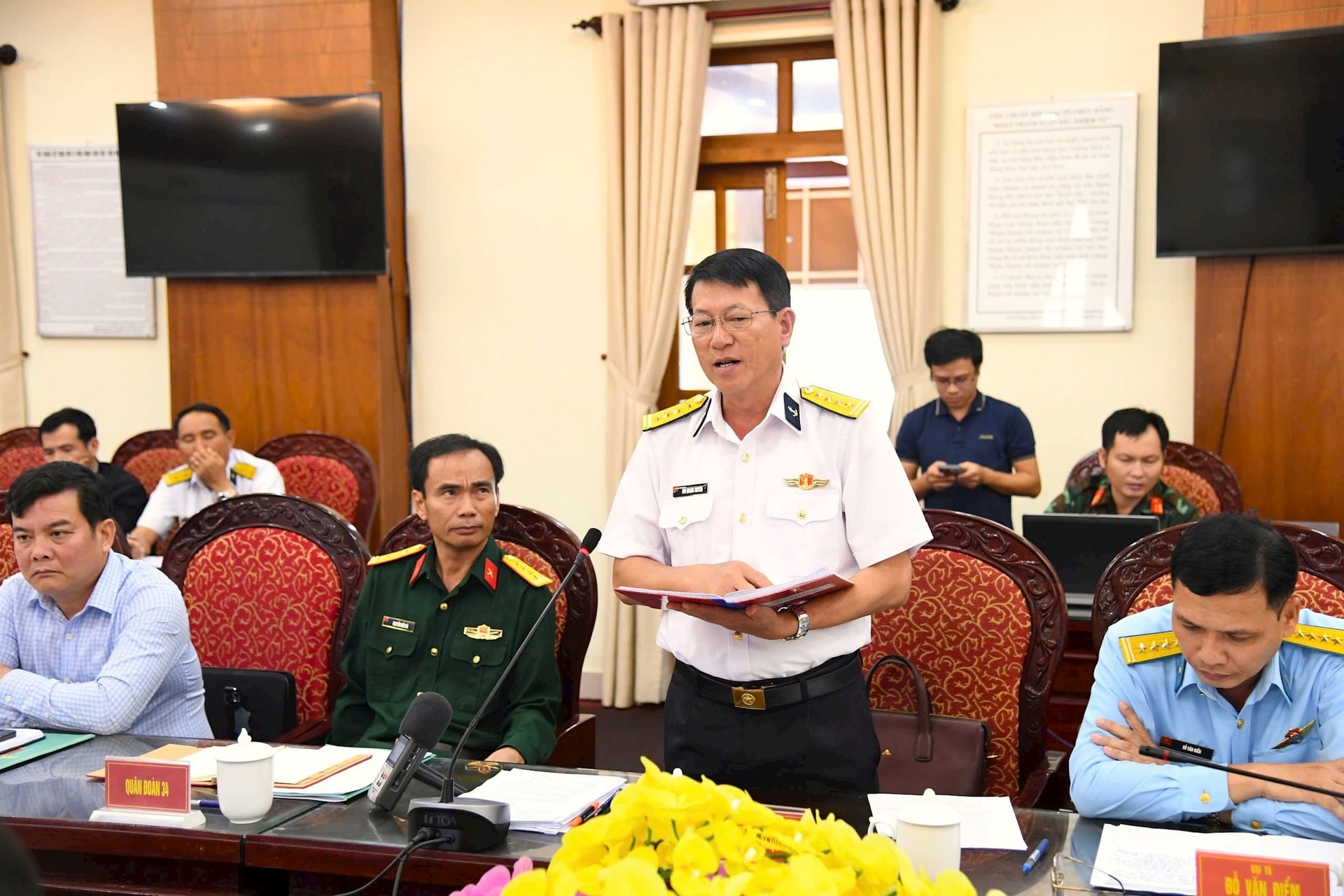 Thiếu tướng Trần Thanh Hải, Phó Tư lệnh Quân khu 5, chủ trì hội nghị với sự tham dự của đại diện lãnh đạo địa phương, Bộ CHQS các tỉnh và các đơn vị được giao nhiệm vụ.