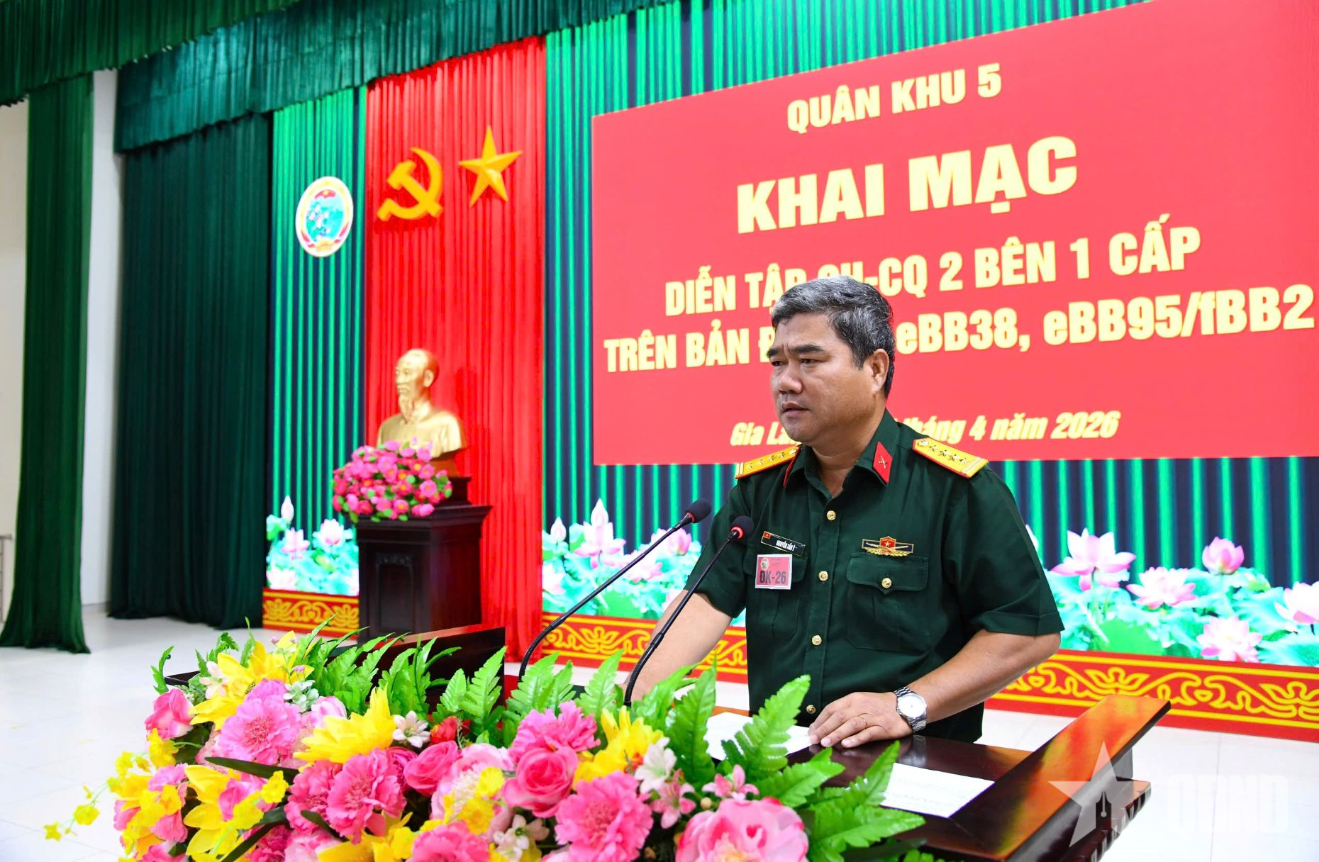 Đại tá Nguyễn Tấn Ý, Phó Tham mưu trưởng Quân khu 5 phát biểu khai mạc diễn tập.