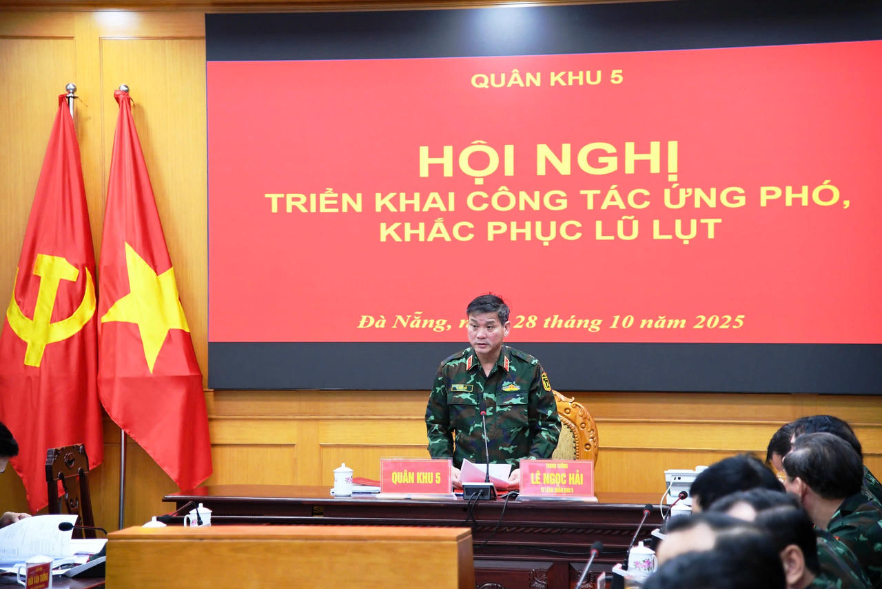 Ngày 28/10, Bộ Tư lệnh Quân khu 5 (QK5) tổ chức hội nghị trực tuyến tại 20 điểm cầu nhằm triển khai công tác ứng phó, khắc phục hậu quả mưa lũ. Trung tướng Lê Ngọc Hải - Tư lệnh QK5, chủ trì hội nghị tại Sở Chỉ huy Quân khu.