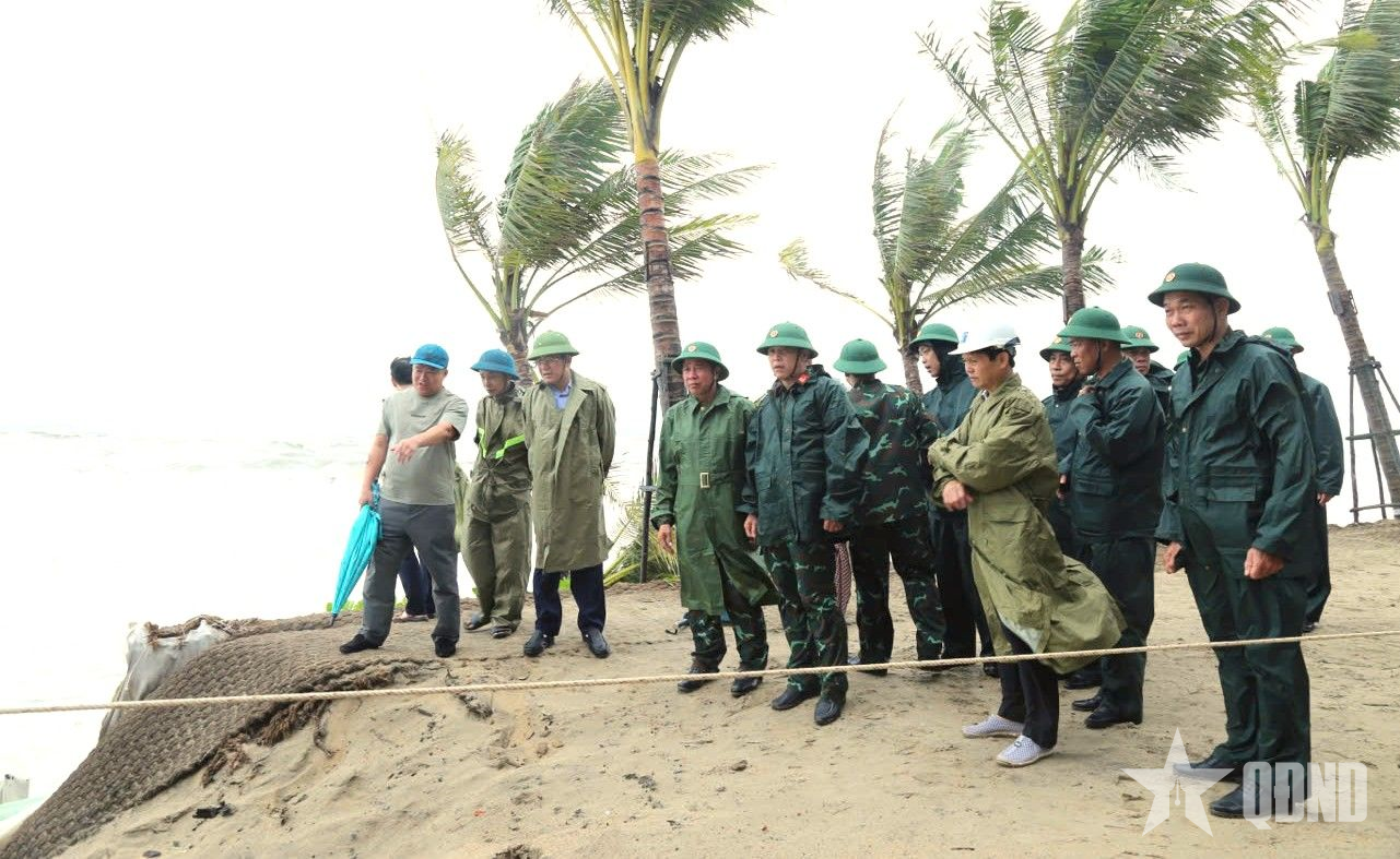 Trong điều kiện mưa kéo dài, lực lượng quân sự, biên phòng, dân quân Bộ CHQS thành phố Đà Nẵng được huy động, sử dụng vật tư, phương tiện cơ giới, bao cát để đắp kè, ngăn sóng tấn công, bảo vệ khu dân cư ven biển.