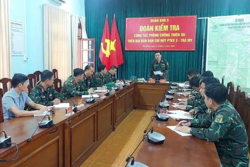 Đoàn công tác Quân khu 5 kiểm tra, chỉ đạo công tác phòng, chống thiên tai tại Ban Chỉ huy phòng thủ khu vực 3 - Trà My (TP Đà Nẵng).