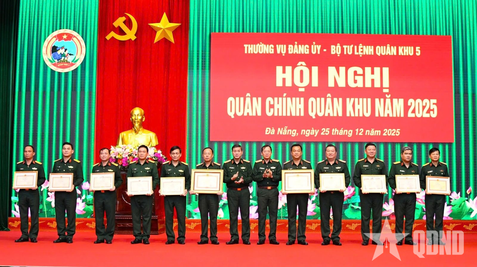 Tại hội nghị, Thiếu tướng Lương Đình Chung, Chính ủy Quân khu 5 phát động Phong trào Thi đua Quyết thắng năm 2026 với chủ đề: “Đoàn kết, kỷ cương, đột phá, sáng tạo, quyết thắng”. Nhân dịp này, Quân khu 5 đã trao các phần thưởng cao quý của Chủ tịch nước, Thủ tướng Chính phủ, Bộ Quốc phòng và Quân khu cho các tập thể, cá nhân có thành tích xuất sắc trong năm 2025.