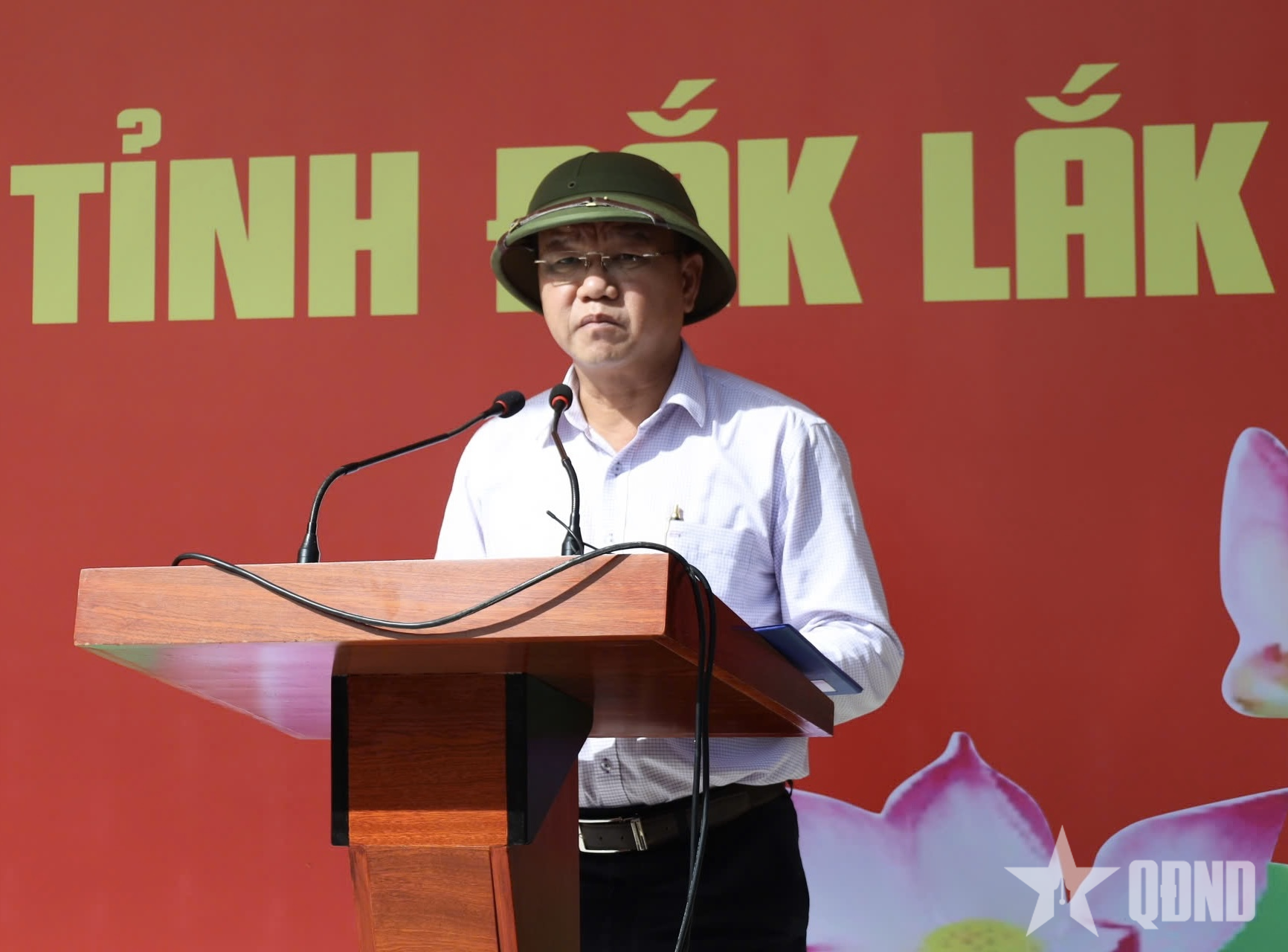 Phát biểu tại buổi lễ, đồng chí Đào Mỹ, Phó chủ tịch UBND tỉnh Đắk Lắk nhấn mạnh, Đảng, Nhà nước cùng cấp ủy, chính quyền địa phương và LLVT luôn đồng hành, sát cánh cùng nhân dân, nhất là trong những thời điểm khó khăn nhất.