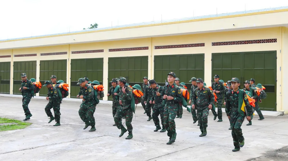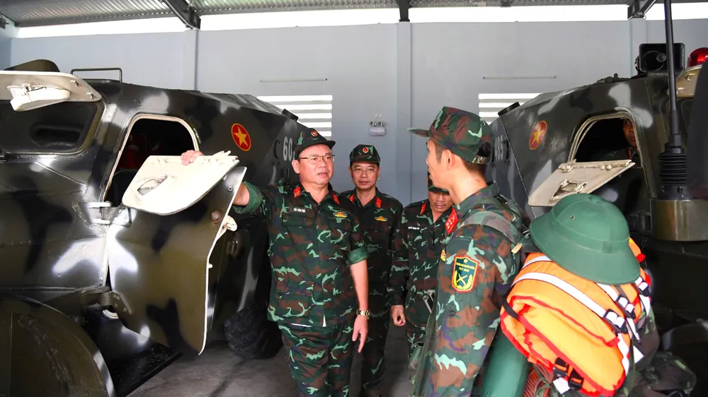 Đại tá Võ Văn Bá kiểm tra tinh thần sẵn sàng làm nhiệm vụ của các chiến sĩ. Ảnh: VV