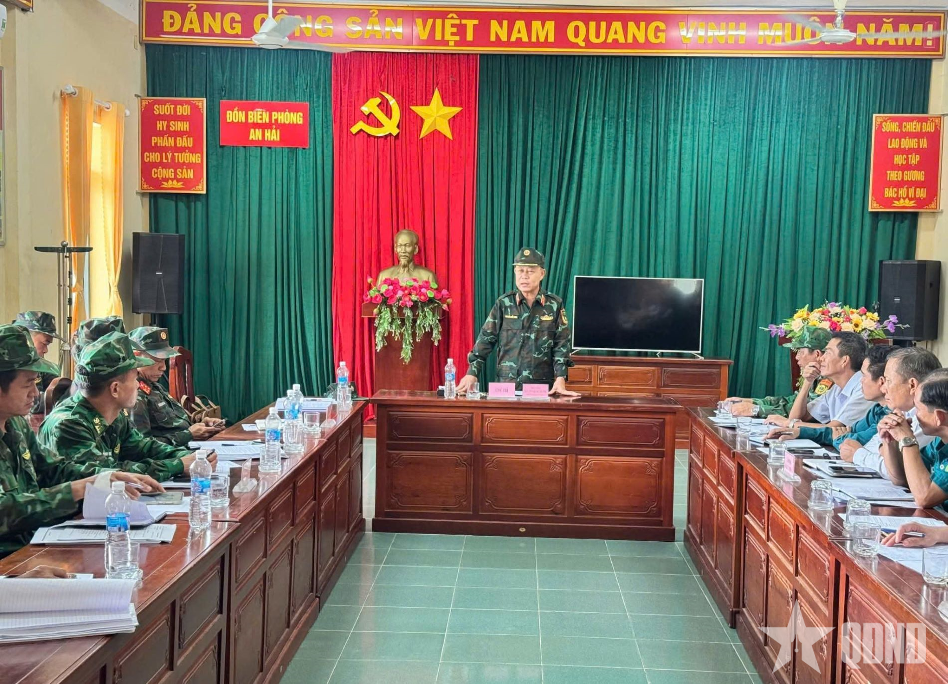Thiếu tướng Nguyễn Quốc Hương, Phó tư lệnh Quân khu 5 làm việc với Đồn Biên phòng An Hải (Ban Chỉ huy Bộ đội Biên phòng tỉnh Đắk Lắk).