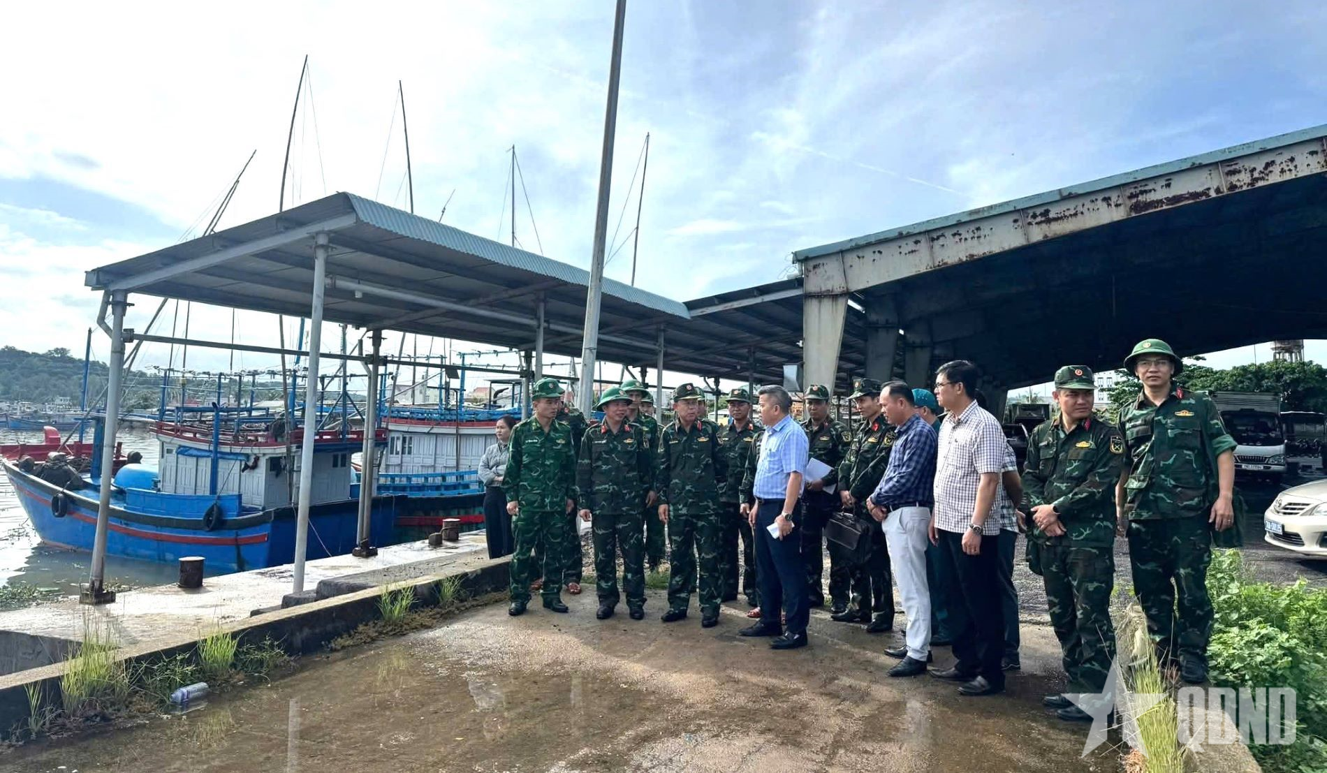 Đoàn công tác của Quân khu 5 do Thiếu tướng Nguyễn Quốc Hương, Phó tư lệnh Quân khu làm trưởng đoàn trực tiếp kiểm tra tại cảng cá Tiên Châu, xã Tuy An Đông, tỉnh Đắk Lắk.