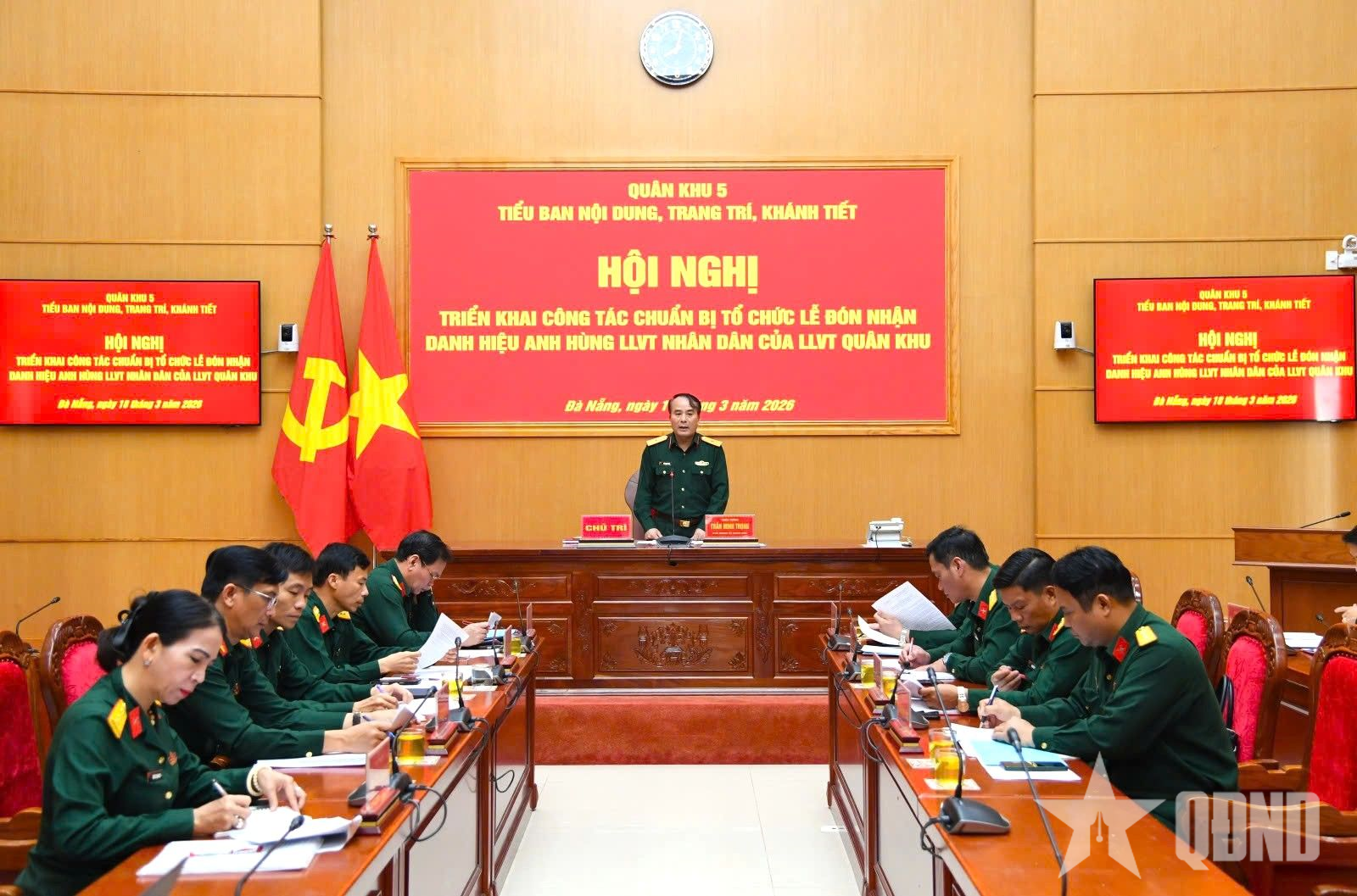 Tại hội nghị, các đại biểu đã nghe báo cáo kết quả công tác chuẩn bị của Tiểu ban nội dung, trang trí, khánh tiết; xem phương án phối cảnh tổng thể phục vụ buổi lễ; thảo luận, thông qua nhiều nội dung trọng tâm như: Báo cáo thành tích của LLVT Quân khu, dự thảo phát biểu đáp từ của Thủ trưởng Bộ tư lệnh Quân khu 5, chương trình nghệ thuật chào mừng và các hoạt động liên quan.