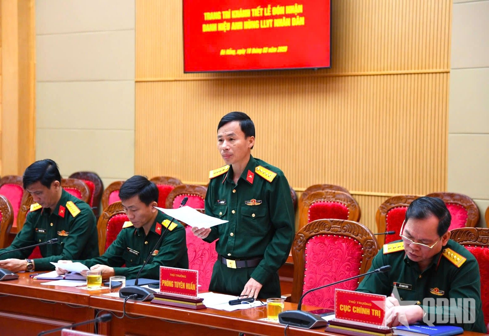Đồng chí Phó chính ủy Quân khu 5 nhấn mạnh: Lễ đón nhận danh hiệu Anh hùng LLVT nhân dân là sự kiện chính trị đặc biệt quan trọng, là niềm vinh dự, tự hào của cán bộ, chiến sĩ LLVT Quân khu 5; là dịp khẳng định truyền thống vẻ vang, những đóng góp to lớn của các thế hệ cán bộ, chiến sĩ qua các thời kỳ.