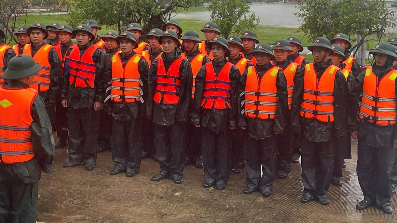 Chiến sĩ Quân khu 5 trước giờ lên đường làm nhiệm vụ giúp dân vùng thiên tai.