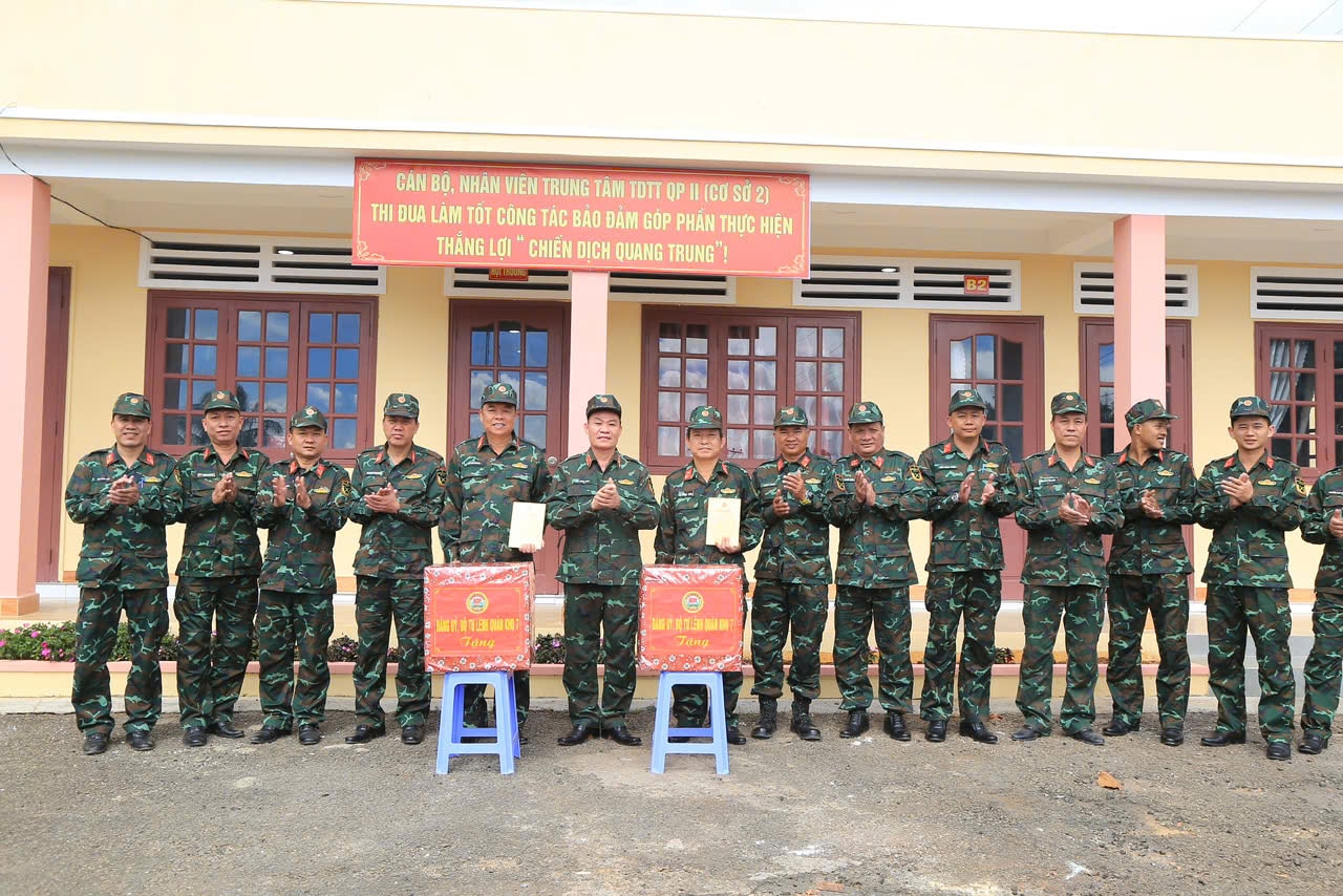 Tặng quà cán bộ, chiến sĩ Trung tâm TDTT Quốc phòng II đang thực hiện công tác bảo đảm cho "Chiến dịch Quang Trung"