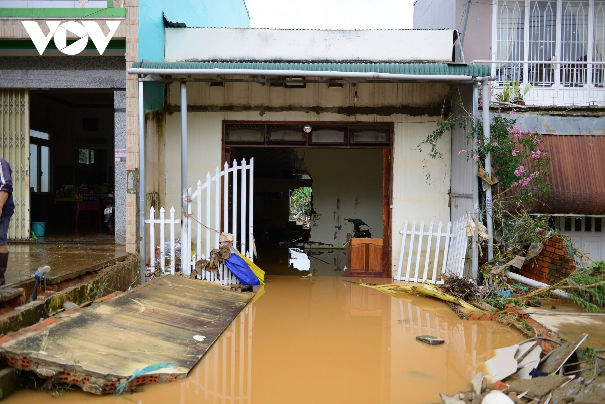 Nhiều nhà dân và cơ sở kinh doanh bị nước lũ tràn vào tầng trệt, gây hư hỏng tài sản và làm tê liệt sinh hoạt của người dân.