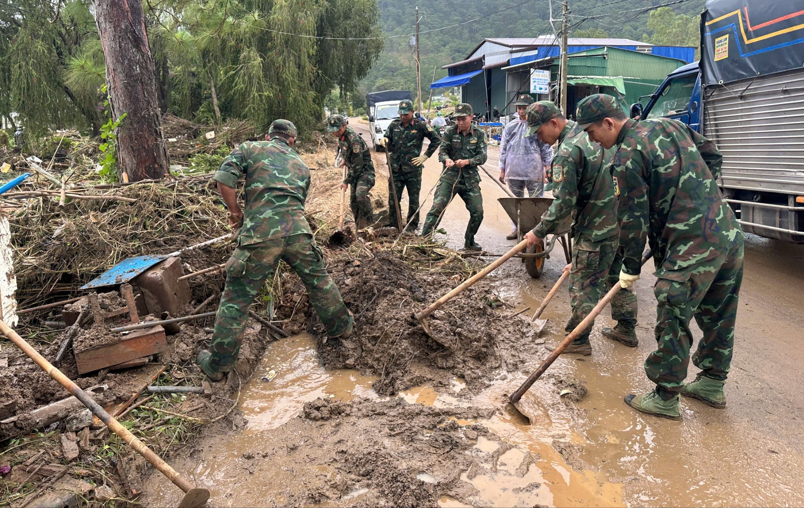 Các lực lượng bộ đội tham gia khắc phục hậu quả lũ lụt góp phần giúp cuộc sống của người dân Lâm Đồng sớm ổn định trở lại. Ảnh: BIỆN CƯỜNG