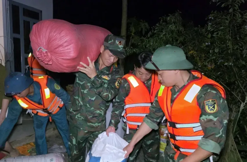 Bộ đội Quân khu 7 sơ tán người dân và di dời tài sản đến nơi an toàn trong đêm. Ảnh: Quân khu 7