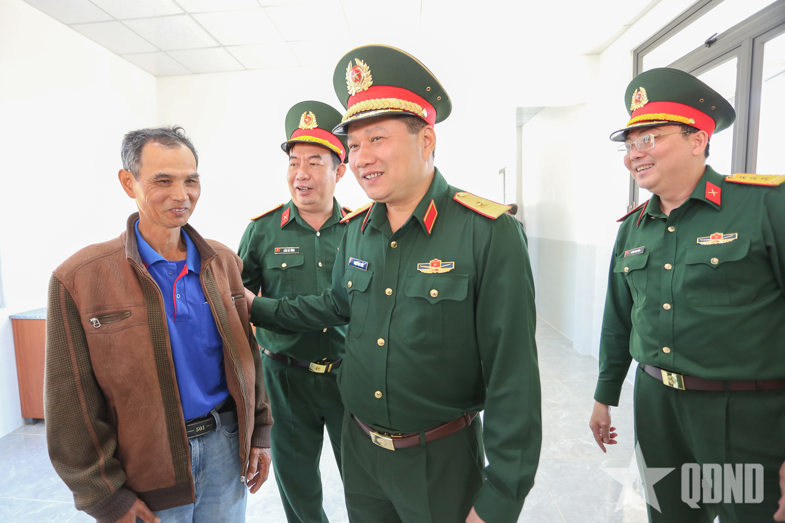 Thiếu tướng Phạm Anh Tuấn, Chủ nhiệm Chính trị Quân khu 7 chúc mừng gia đình được bàn giao nhà mới.