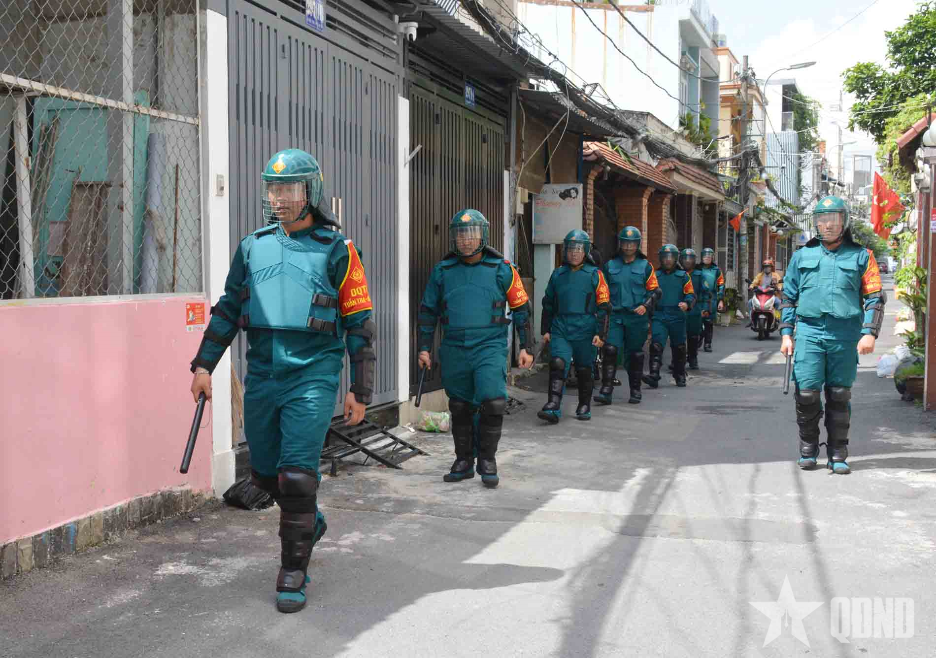Dân quân TP Hồ Chí Minh tuần tra địa bàn trọng điểm.