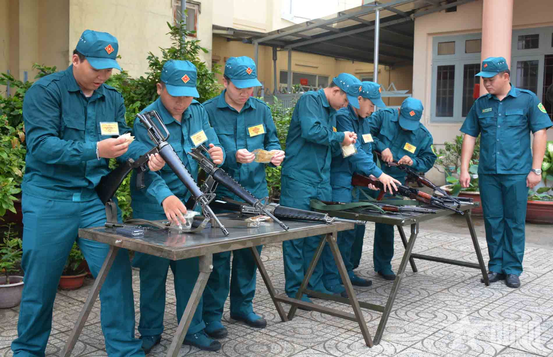 Dân quân TP Hồ Chí Minh bảo quản vũ khí bảo đảm sẵn sàng chiến đấu.