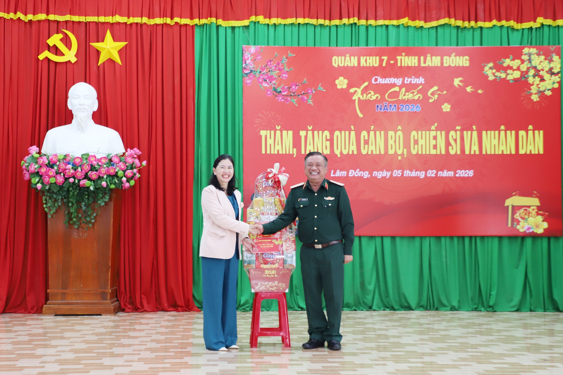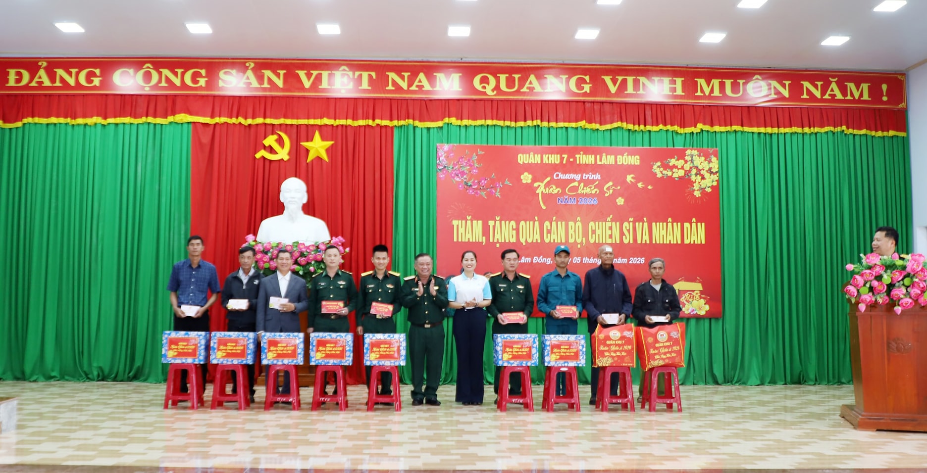 Lãnh đạo Quân khu 7 và Hội Liên hiệp Phụ nữ tỉnh Lâm Đồng tặng quà già làng, trưởng bản, người có uy tín và cán bộ, chiến sĩ địa bàn biên giới