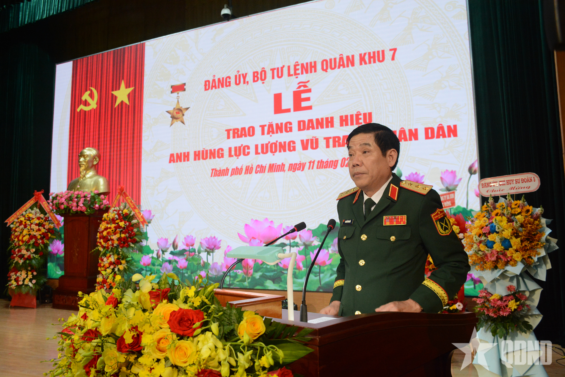 Tại buổi lễ, đại diện Quân khu 7 đã công bố các quyết định của Chủ tịch nước về phong tặng danh hiệu Anh hùng LLVT nhân dân cho 3 đồng chí: Trung tướng Lưu Phước Lượng, nguyên Phó trưởng ban chỉ đạo Tây Nam Bộ, nguyên Phó tư lệnh về Chính trị Quân khu 9; Trung tướng Lê Thành Tâm, nguyên Phó tư lệnh về Chính trị Quân khu 7, nguyên Phó sư đoàn trưởng về Chính trị Sư đoàn 5 (Quân khu 7); Thiếu tướng Trần Ngọc Thổ, nguyên Tham mưu trưởng Quân khu 7.