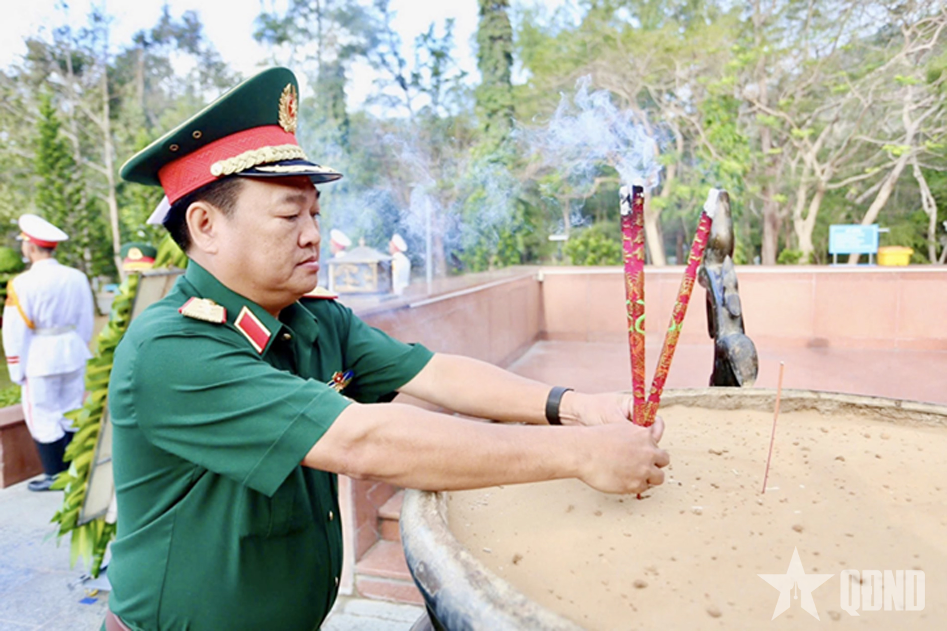 Trung tướng Trần Vinh Ngọc dâng hương tưởng niệm các anh hùng liệt sĩ tại Nghĩa trang Hàng Dương.