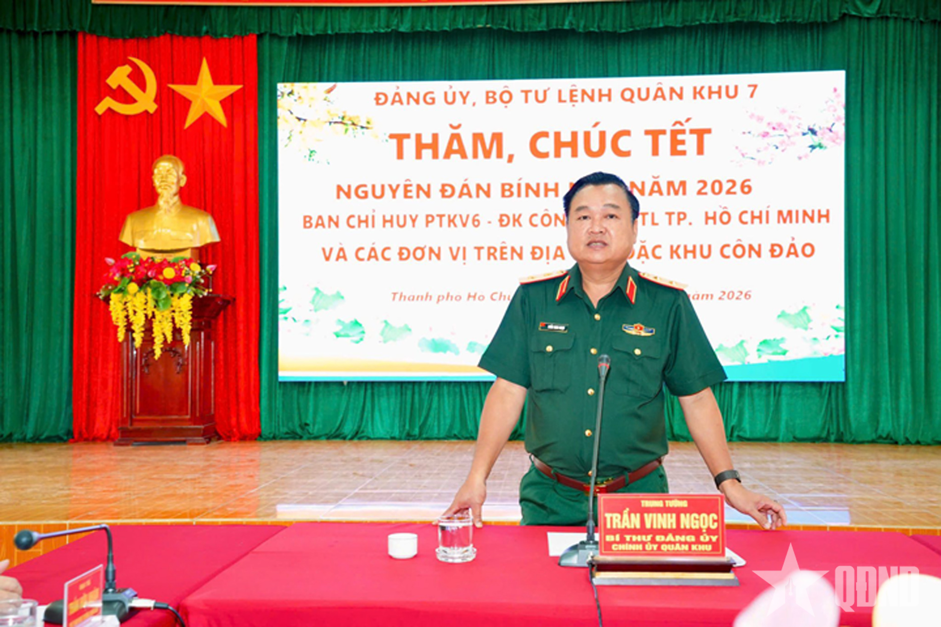 Nhân dịp Tết Nguyên đán Bính Ngọ 2026, Trung tướng Trần Vinh Ngọc dẫn đầu đoàn công tác đến thăm, chúc Tết cán bộ, chiến sĩ các đơn vị trên Đặc khu Côn Đảo và Ban chỉ huy Phòng thủ khu vực 6 - Đặc khu Côn Đảo (Bộ tư lệnh TP Hồ Chí Minh).