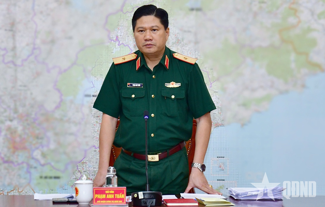 Thiếu tướng Phạm Anh Tuấn, Chủ nhiệm Chính trị Quân khu 7 chủ trì hội nghị.