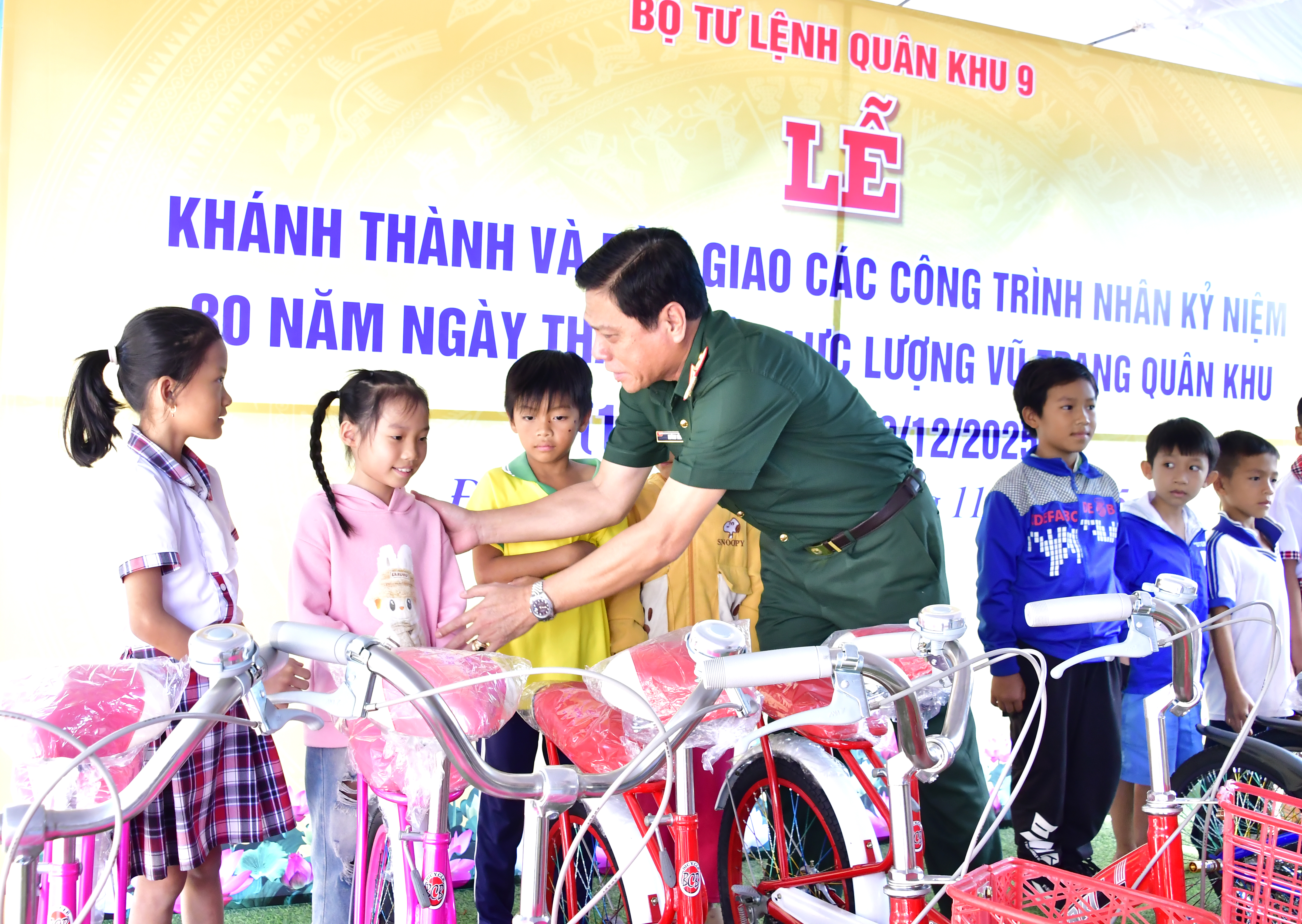 Lãnh đạo Quân khu 9 tặng xe đạp cho học sinh hoàn cảnh khó khăn