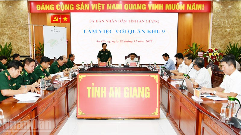 Phát biểu tại buổi làm việc, Phó Chủ tịch Ủy ban nhân dân tỉnh An Giang Ngô Công Thức đề nghị các sở, ngành liên quan phối hợp chặt chẽ Quân khu 9, nắm chắc tình hình quản lý, sử dụng đất, nhất là đối với những khu vực phục vụ mục đích kết hợp quốc phòng-kinh tế, đồng thời xây dựng các phương án sớm nhất để tạo điều kiện cho đặc khu Thổ Châu triển khai nhanh các dự án trong tháng 12/2025.