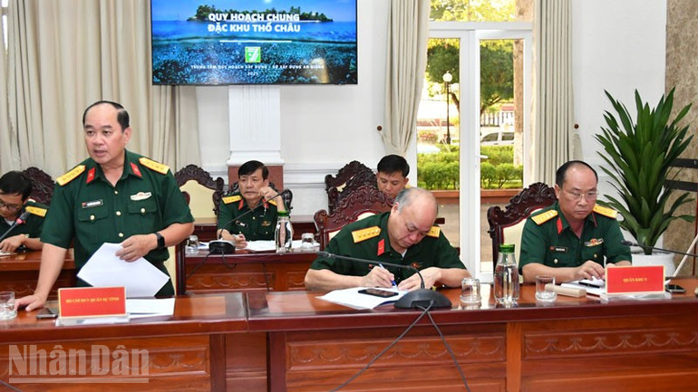 Ủy ban nhân dân tỉnh An Giang và Bộ Tư lệnh Quân khu 9 cùng trao đổi về việc sử dụng đất quốc phòng do quân khu và các đơn vị trực thuộc quản lý trên địa bàn, đồng thời xem xét các vấn đề liên quan đến việc bồi thường, giải tỏa và triển khai các phương án vận tải đường biển để có thể nhanh chóng vận chuyển trang thiết bị, phương tiện và đội ngũ kỹ sư, công nhân đến đặc khu Thổ Châu triển khai các dự án, công trình.