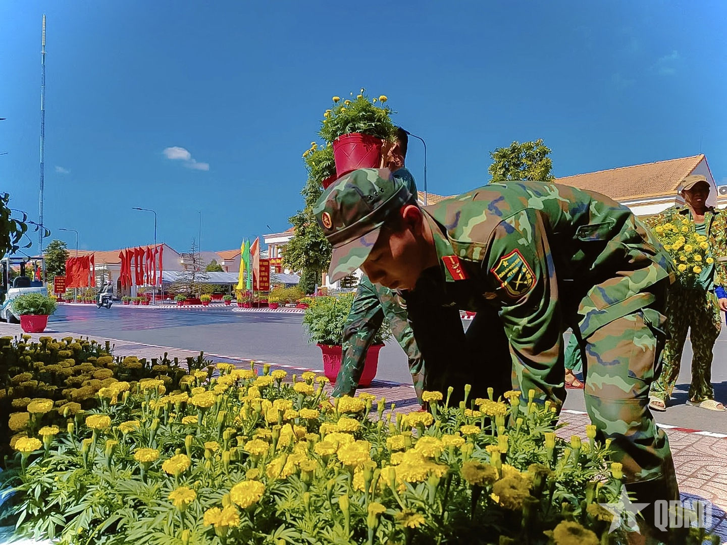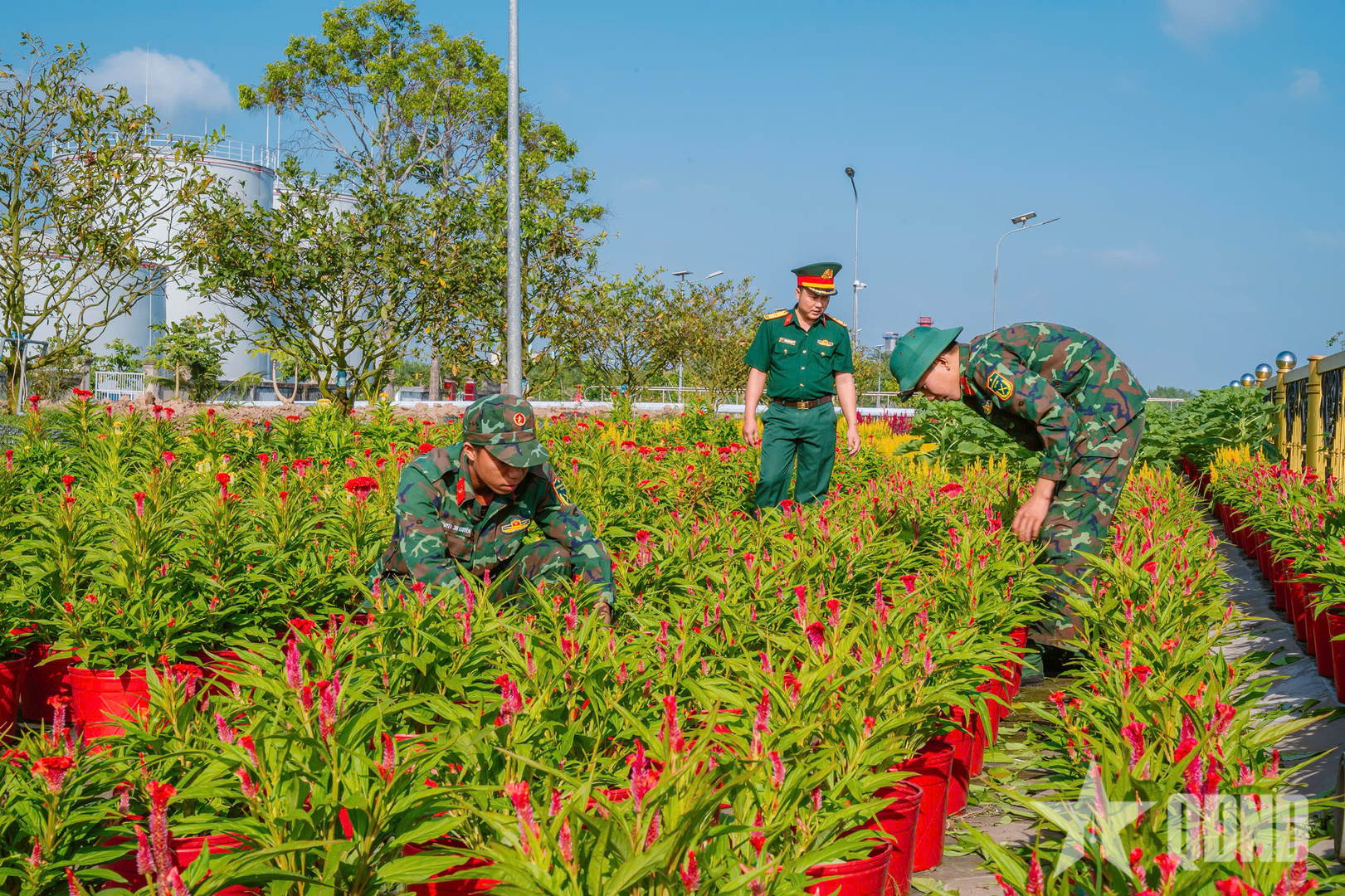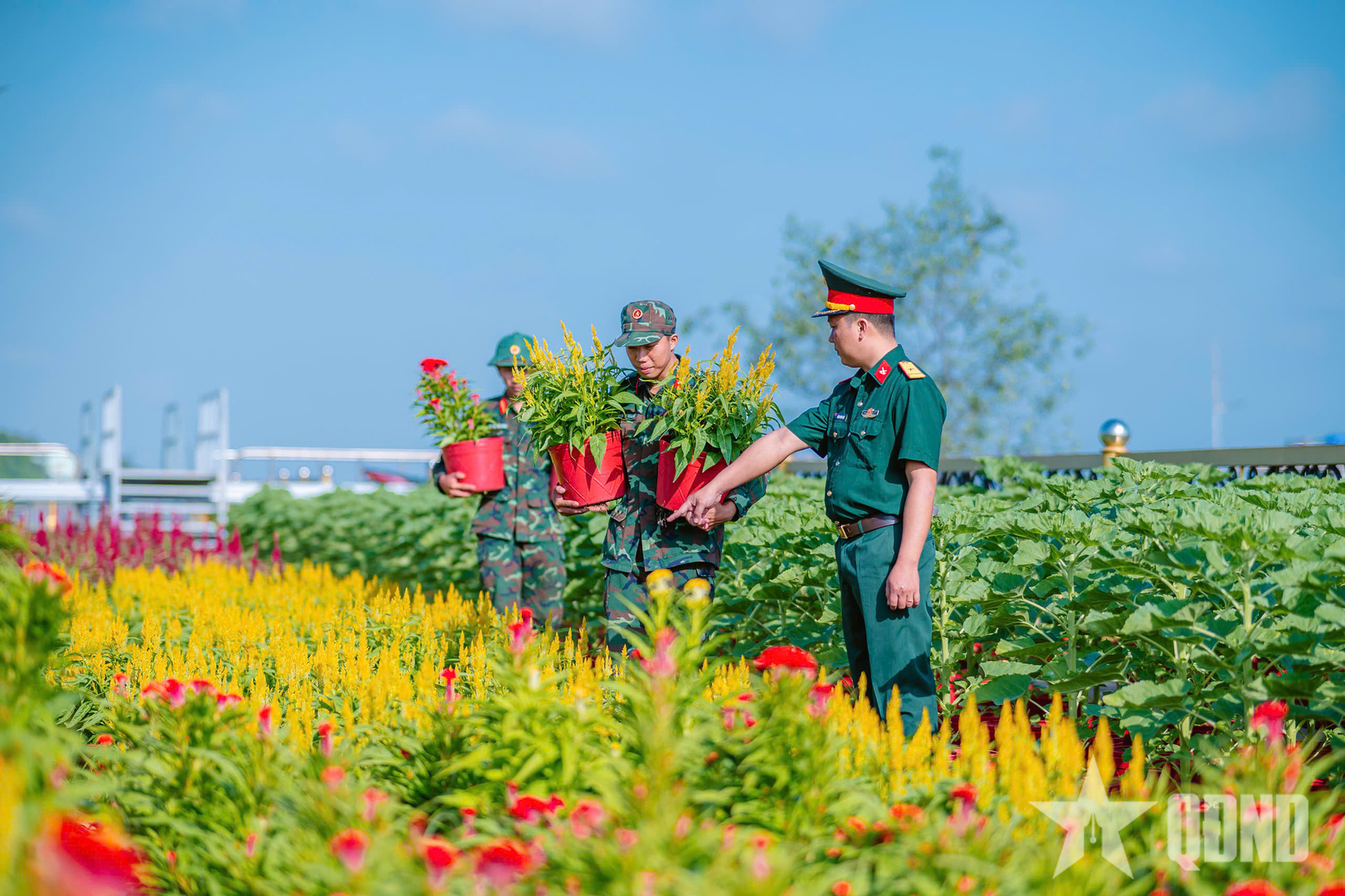 Dưới đây là một số hình ảnh cán bộ, chiến sĩ các cơ quan, đơn vị thuộc Cục Hậu cần-Kỹ thuật (Quân khu 9) gieo trồng và chăm sóc hoa:
