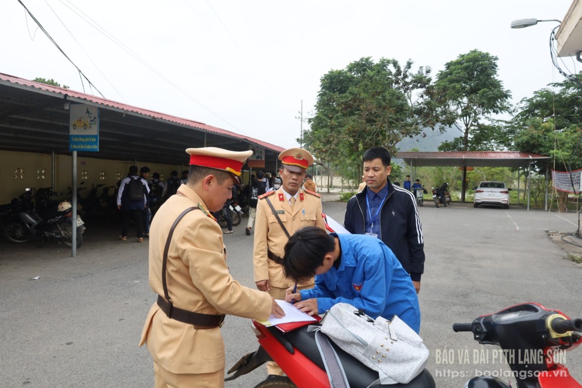 Ghi nhận thực tế của phóng viên sáng ngày 6/11, tại Trung tâm giáo dục nghề nghiệp – giáo dục thường xuyên (GDNN-GDTX) Chi Lăng cho thấy, ngay khi lực lượng chức năng có mặt, Ban Giám đốc Trung tâm đã phối hợp kiểm tra khu vực bãi để xe trong trường và xung quanh cổng trường. Qua kiểm tra gần 100 phương tiện tại bãi để xe của trung tâm, lực lượng chức năng phát hiện 3 xe mô tô do học sinh điều khiển vi phạm lỗi không có gương chiếu hậu đúng quy định. Cùng đó, tại bãi để xe trường THPT Hoàng Văn Thụ, phường Lương Văn Tri, các cán bộ phòng CSGT, Công an tỉnh tiến hành kiểm tra khoảng 300 phương tiện là xe mô tô, xe đạp điện thì phát hiện 11 trường hợp vi phạm các lỗi xe máy điện chưa có đăng ký, không lắp gương chiếu hậu và chưa đủ tuổi điều khiển phương tiện...