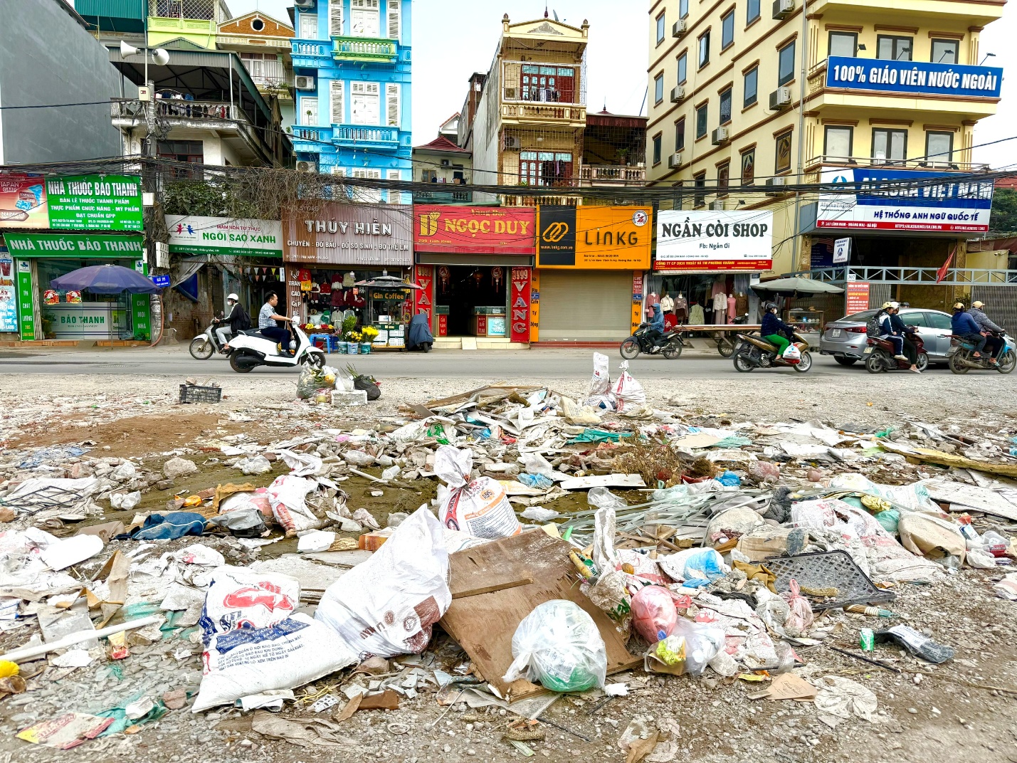 Tại nhiều khu dân cư, rác thải sinh hoạt chất đống ven đường gây mất mỹ quan đô thị.