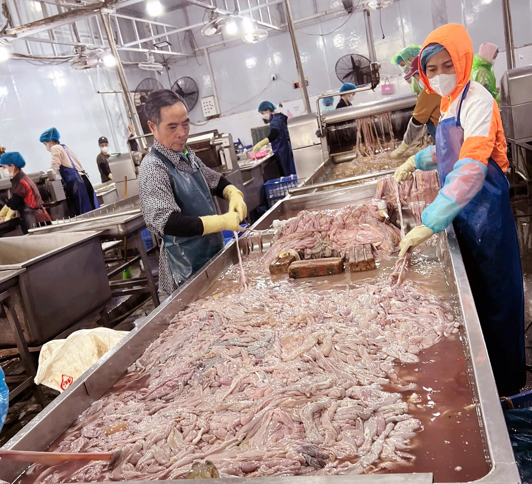 Chi cục QLTT TP Hà Nội phát hiện gần 64 tấn lòng lợn không hóa đơn chứng từ tại Công ty TNHH Sản xuất và Thương mại Dũng Phát. Ảnh: Hoài Nam