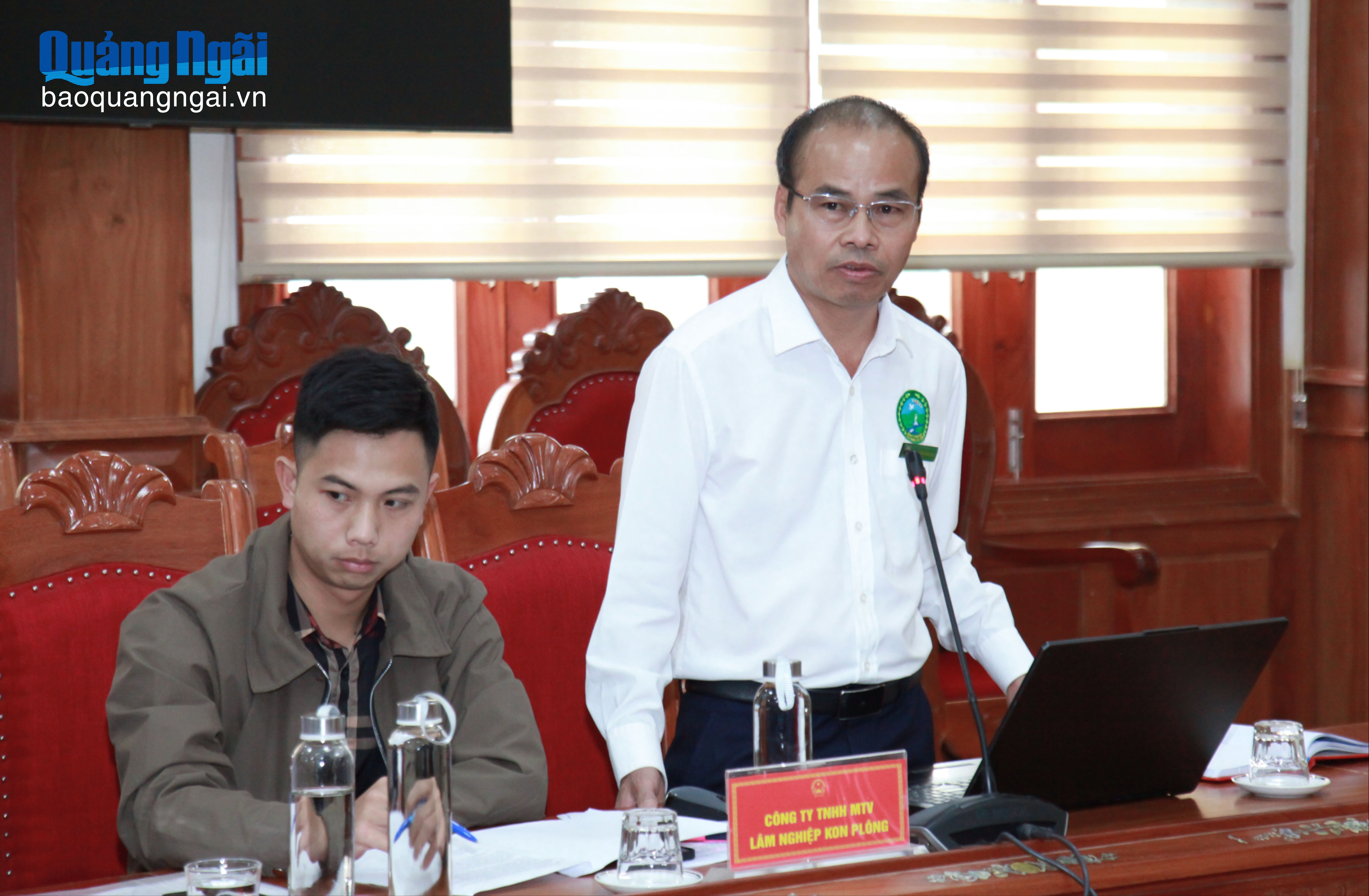 Đại diện Công ty TNHH Một thành viên Lâm nghiệp Kon Plông báo cáo tại buổi làm việc.