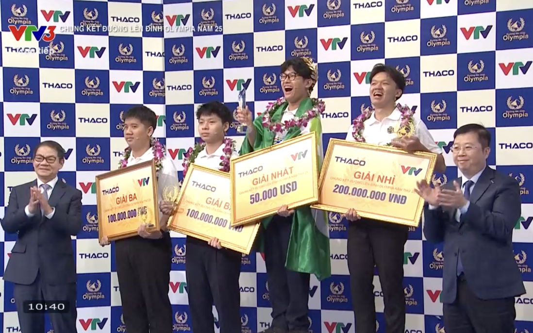 Kết thúc Đường lên đỉnh Olympia 2025, Lê Quang Duy Khoa và Nguyễn Nhựt Lam giành giải Ba, Đoàn Thanh Tùng giải Nhì với số điểm 210. Với số điểm 215, Bảo Khánh đã xuất sắc giành giải Quán quân năm nay với vòng nguyệt quế và phần thưởng 50.000 USD.