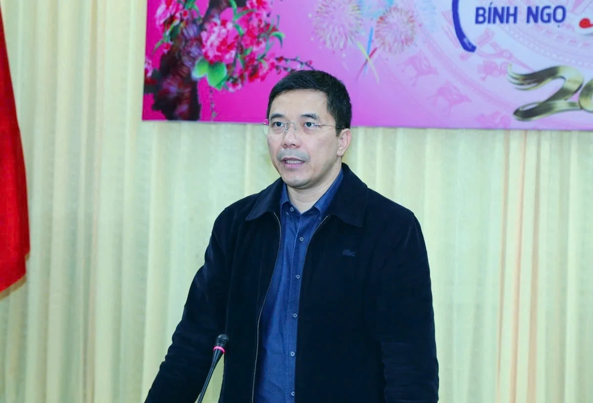 Đồng chí Nguyễn Hồng Phong, Ủy viên dự khuyết Trung ương Đảng, Phó Bí thư Thường trực Tỉnh ủy phát biểu chúc tết cán bộ, chiến sĩ.