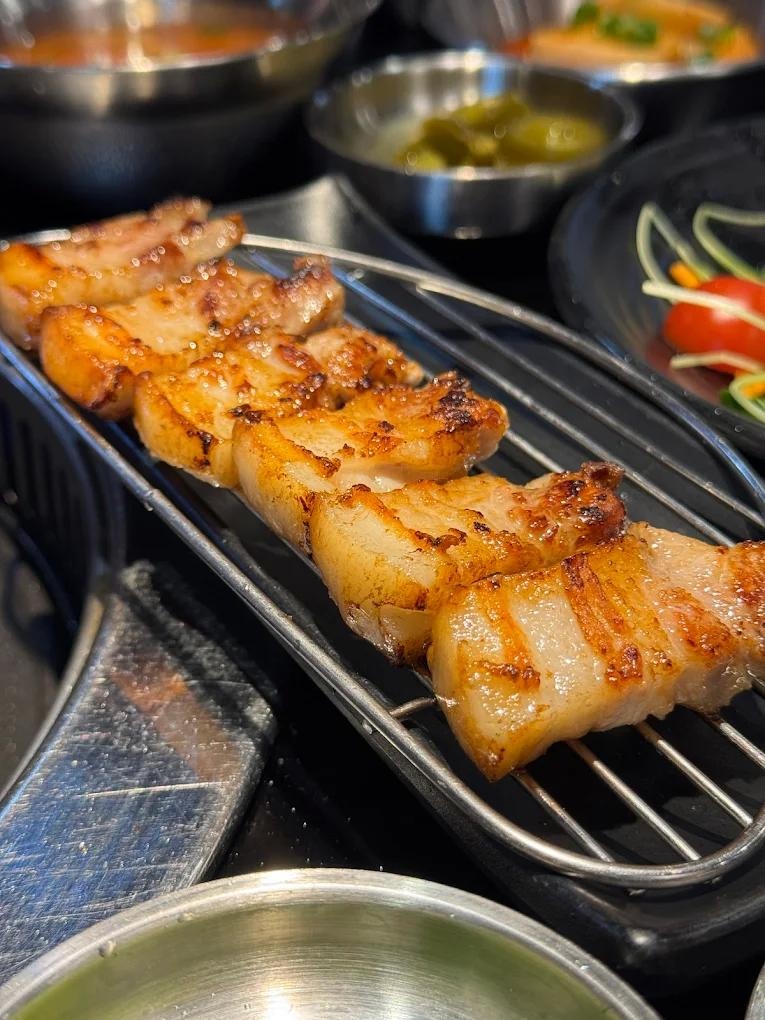 Ngoài ra, quán phục vụ nhiều món ăn kèm kiểu Hàn Quốc như trứng ngâm tương, giá trộn, kim chi, kim chi củ cải, rau củ xào, bánh hành, cùng nước sốt trộn salad. Thực khách còn được phục vụ miễn phí trứng hấp và một loại canh tùy chọn.