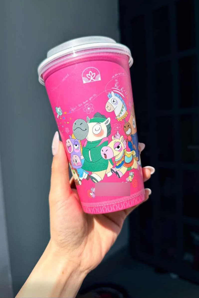 Quán trà sữa in trái phép artwork độc quyền của họa sĩ lên ly giấy. Ảnh: T.P.