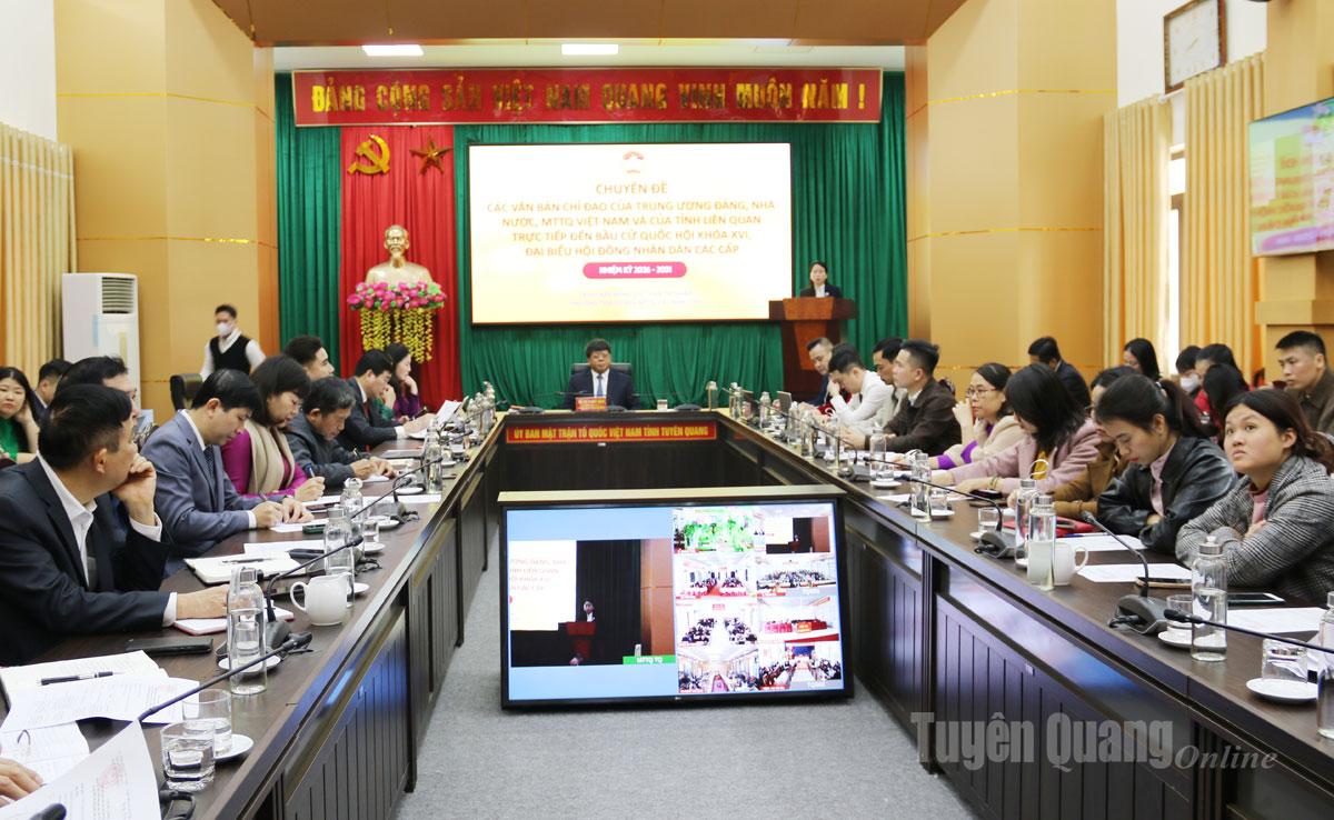 Tại buổi quán triệt, các đại biểu được phổ biến các văn bản về: Chỉ đạo, hướng dẫn của Đảng, Nhà nước, MTTQ Việt Nam và của tỉnh về công tác bầu cử đại biểu Quốc hội khóa XVI và đại biểu Hội đồng nhân dân các cấp nhiệm kỳ 2026-2031; Hướng dẫn công tác Mặt trận tham gia cuộc bầu cử: Công tác hiệp thương, lựa chọn, giới thiệu người ứng cử đại biểu Quốc hội khóa XVI và đại biểu Hội đồng nhân dân các cấp nhiệm kỳ 2026-2031; tổ chức hội nghị lấy ý kiến cử tri nơi công tác, nơi cư trú đối với người ứng cử đại biểu Quốc hội khóa XVI và đại biểu HĐND các cấp nhiệm kỳ 2026-2031; công tác kiểm tra, giám sát cuộc bầu cử đại biểu Quốc hội và đại biểu HĐND các cấp nhiệm kỳ 2026-2031; Hướng dẫn việc ứng dụng công nghệ thông tin, chuyển đổi số trong công tác bầu cử.