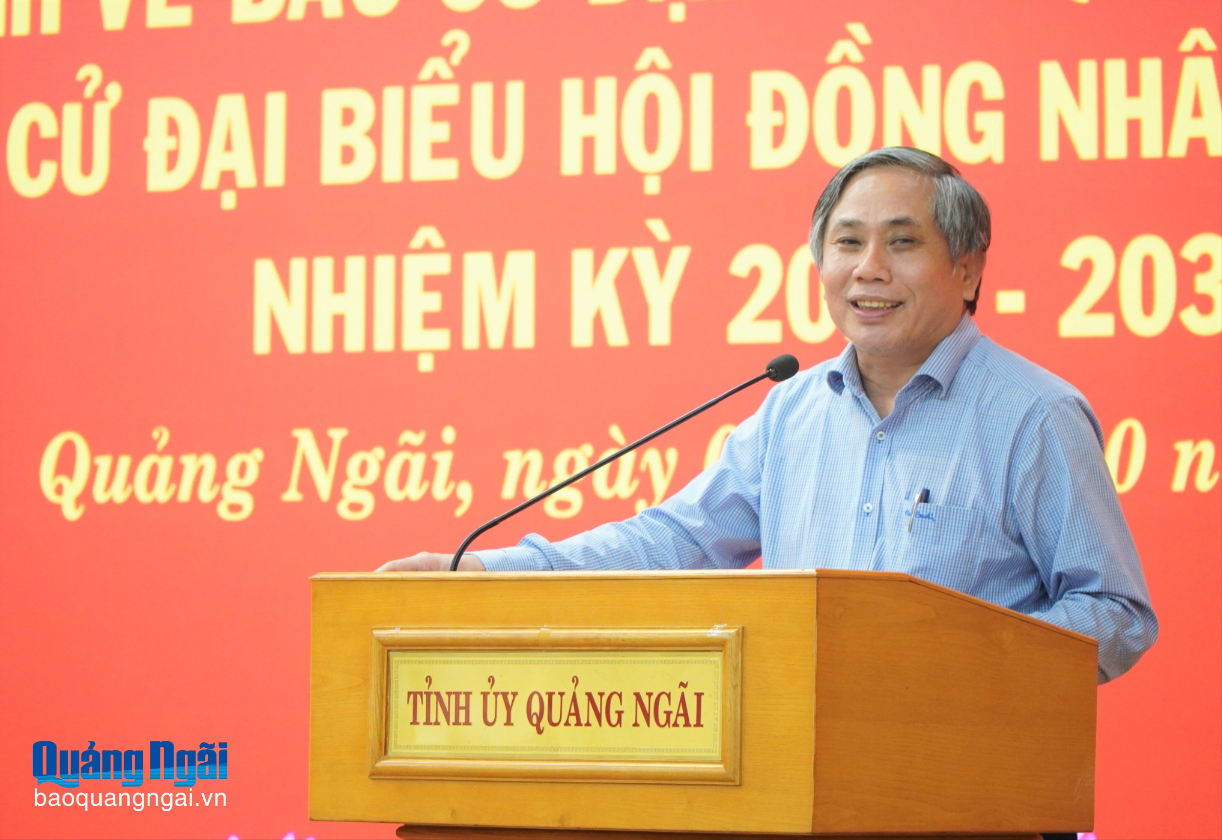 Tại hội nghị, Ủy viên Ban Thường vụ Tỉnh ủy, Trưởng ban Tổ chức Tỉnh ủy Lữ Ngọc Bình phổ biến, quán triệt các văn bản: Chỉ thị số 46-CT/TW ngày 16/5/2025 của Bộ Chính trị về lãnh đạo cuộc bầu cử đại biểu Quốc hội khóa XVI và bầu cử đại biểu HĐND các cấp nhiệm kỳ 2026 - 2031; Chỉ thị số 01-CT/TU ngày 29/7/2025 của Ban Thường vụ Tỉnh ủy về lãnh đạo cuộc bầu cử đại biểu Quốc hội khóa XVI và bầu cử đại biểu HĐND các cấp nhiệm kỳ 2026 - 2031; Hướng dẫn số 36-HD/BTCTW ngày 09/9/2025 của Ban Tổ chức Trung ương về công tác nhân sự đại biểu Quốc hội khóa XVI và đại biểu HĐND các cấp nhiệm kỳ 2026 – 2031.