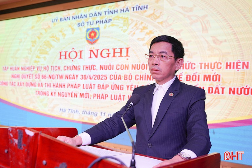 Sáng 22/11, Sở Tư pháp Hà Tĩnh tổ chức hội nghị quán triệt Luật Sửa đổi, bổ sung một số điều của Luật Bầu cử Đại biểu quốc hội và Đại biểu HĐND; Nghị quyết số 66 của Bộ Chính trị về đổi mới công tác xây dựng và thi hành pháp luật đáp ứng yêu cầu phát triển đất nước trong kỷ nguyên mới; tập huấn nghiệp vụ hộ tịch, chứng thực, nuôi con nuôi.