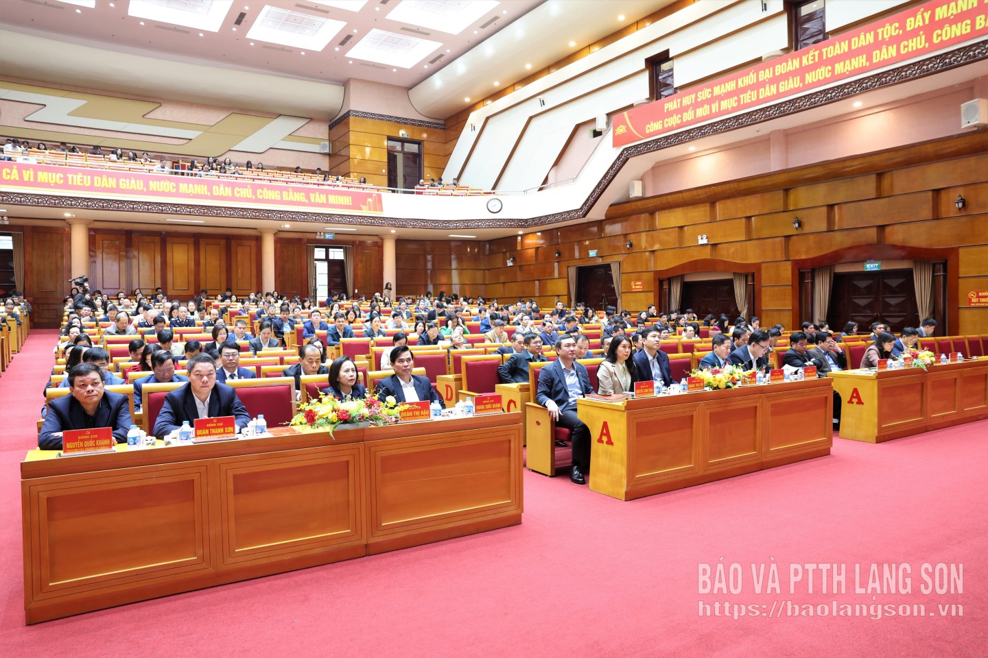 Dự hội nghị tại điểm cầu Trung tâm hội nghị tỉnh Lạng Sơn có các đồng chí: Hoàng Quốc Khánh, Ủy viên Trung ương Đảng, Bí thư Tỉnh ủy; Đoàn Thị Hậu, Phó Bí Thư Thường trực Tỉnh ủy, Chủ tịch HĐND tỉnh; Nguyễn Cảnh Toàn, Phó Bí thư Tỉnh ủy, Chủ tịch UBND tỉnh; Đoàn Thu Hà, Phó Bí thư Tỉnh ủy, Chủ tịch Ủy ban MTTQ Việt Nam tỉnh; Vũ Hoàng Anh, Phó Bí thư Tỉnh ủy; các đồng chí Ủy viên Ban Thường vụ Tỉnh ủy, Ủy viên Ban Chấp hành Đảng bộ tỉnh; lãnh đạo các sở, ban, ngành tỉnh; các đồng chí báo cáo viên cấp tỉnh; văn nghệ sĩ trên địa bàn. Hội nghị được kết nối đến hơn 600 điểm cầu với sự tham gia của hơn 22.000 đại biểu trong tỉnh.