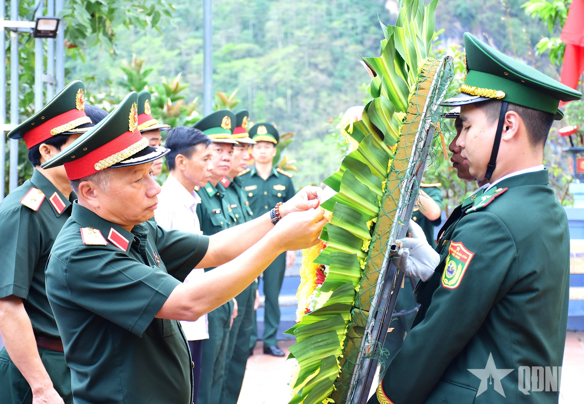 Thượng tướng Lê Quang Minh và đoàn công tác Quân ủy Trung ương, Bộ Quốc phòng tưởng nhớ các Anh hùng liệt sĩ tại Đài hương 468.