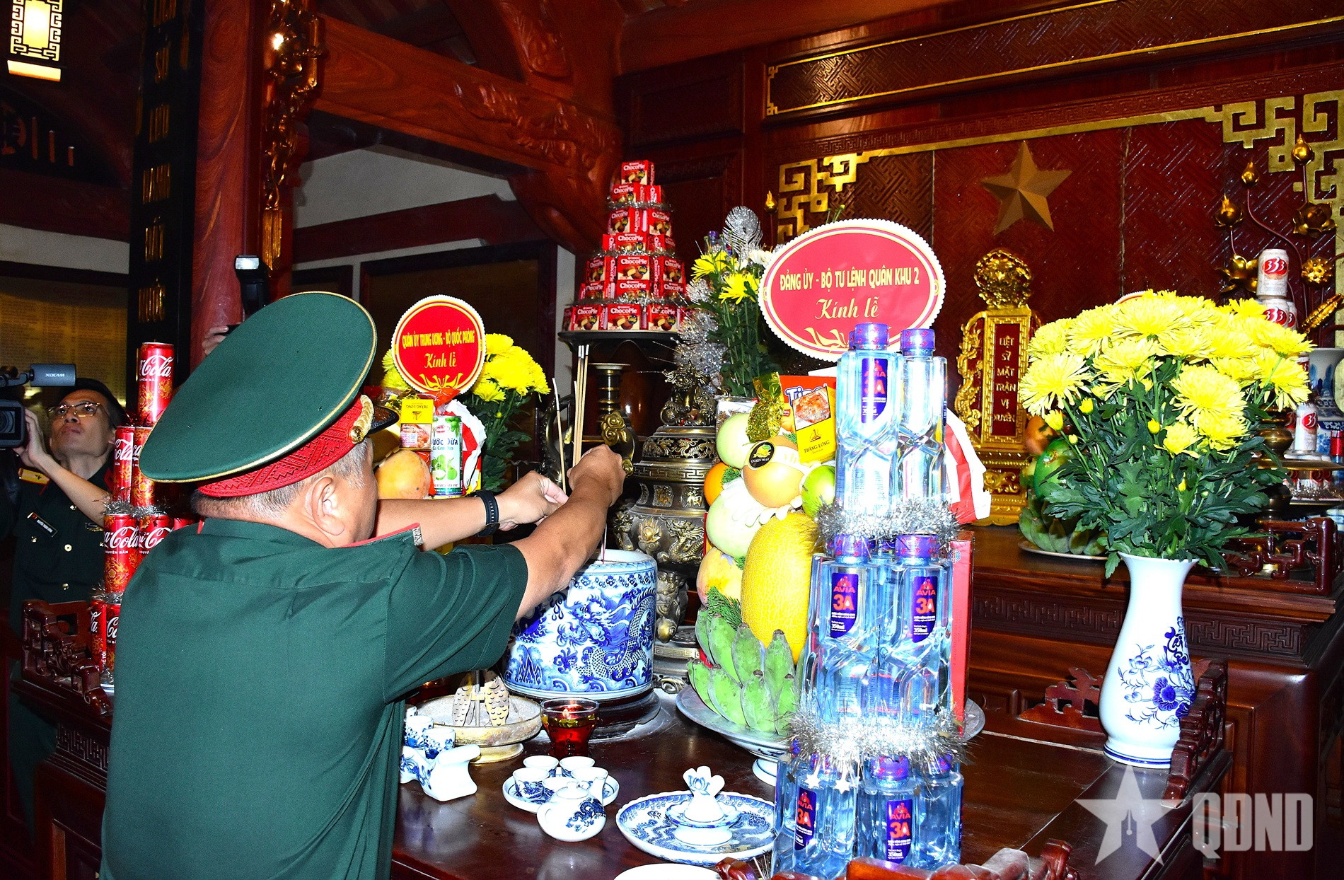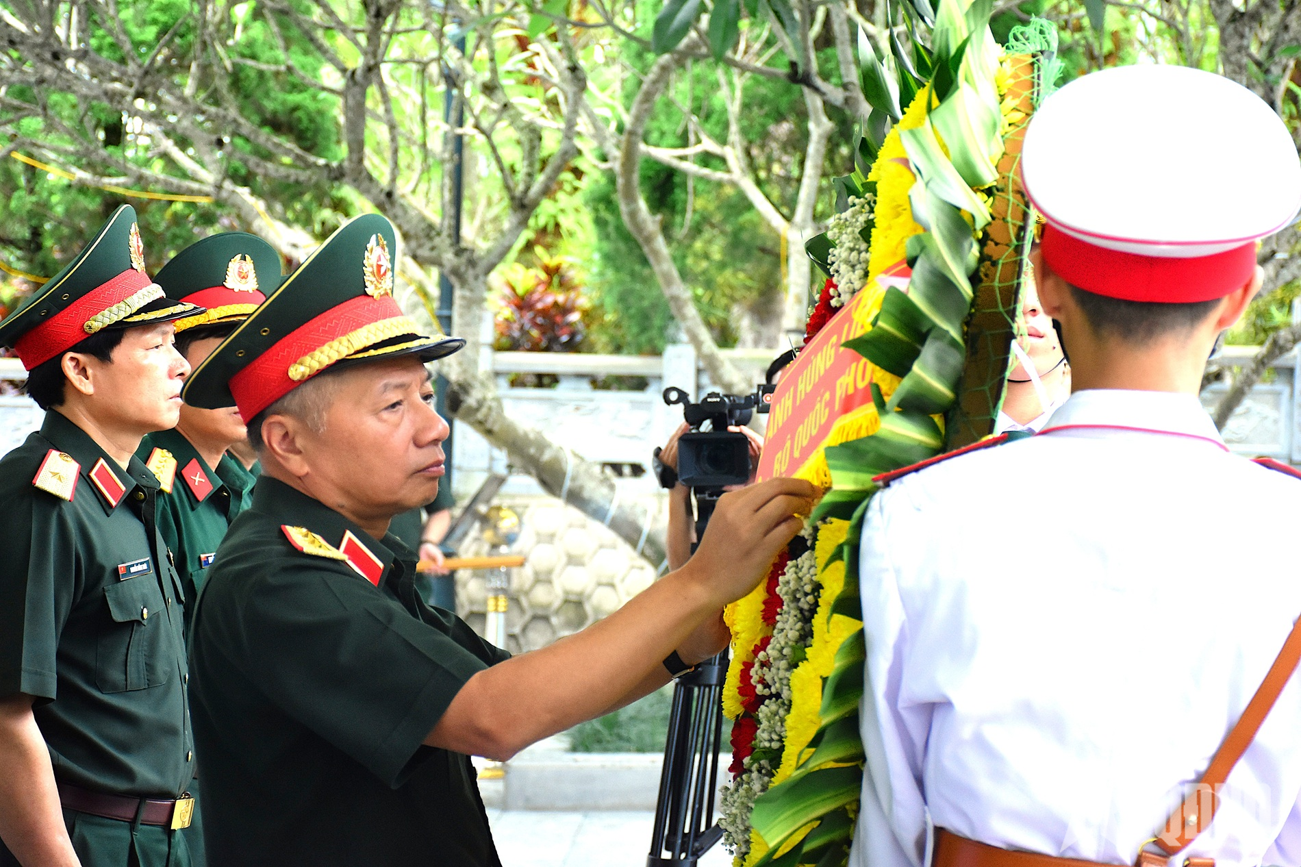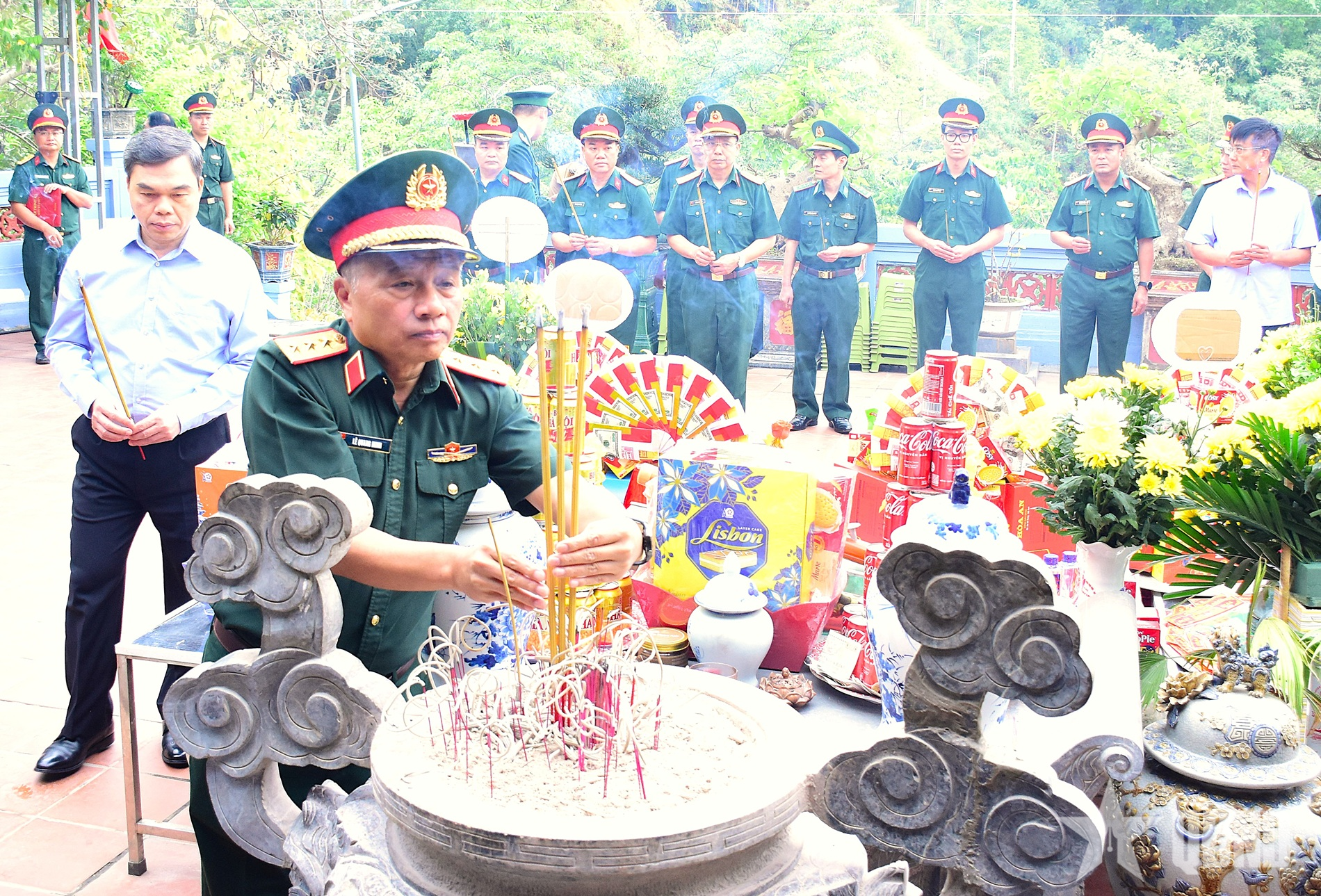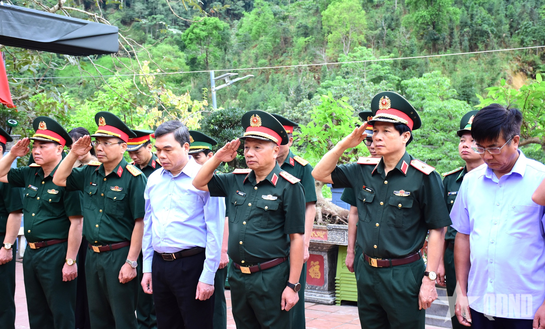 Thượng tướng Lê Quang Minh và đoàn công tác Quân ủy Trung ương, Bộ Quốc phòng dâng hương tưởng nhớ Chủ tịch Hồ Chí Minh, Đại tướng Võ Nguyên Giáp và các Anh hùng liệt sĩ tại Đài hương 468.
