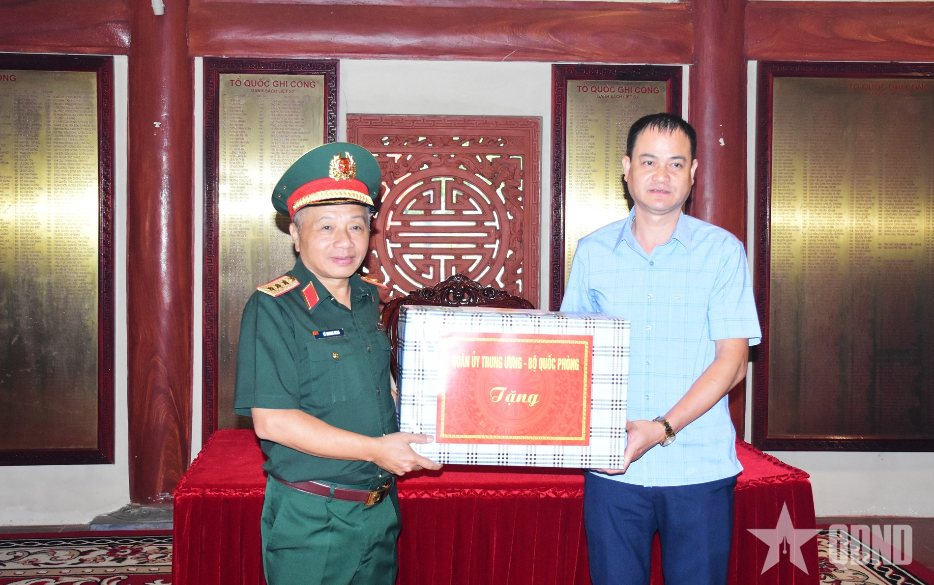 Thượng tướng Lê Quang Minh trao quà tặng Ban Quản lý Nghĩa trang Liệt sĩ quốc gia Vị Xuyên.
